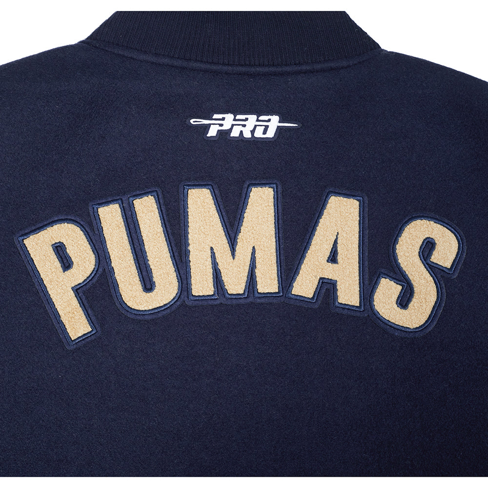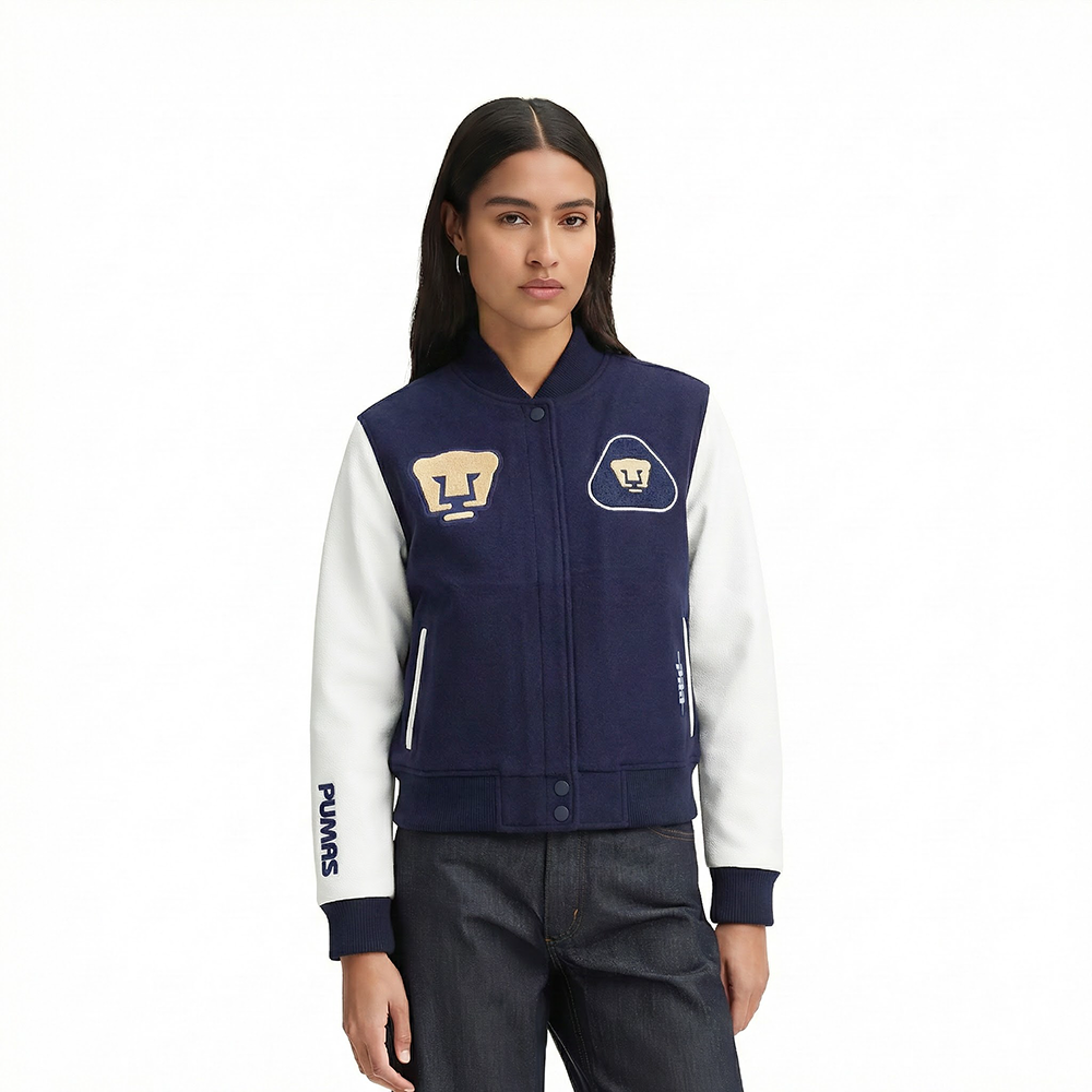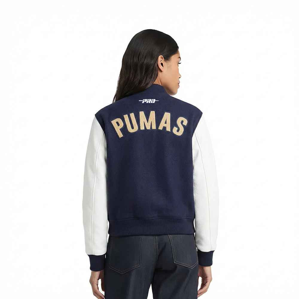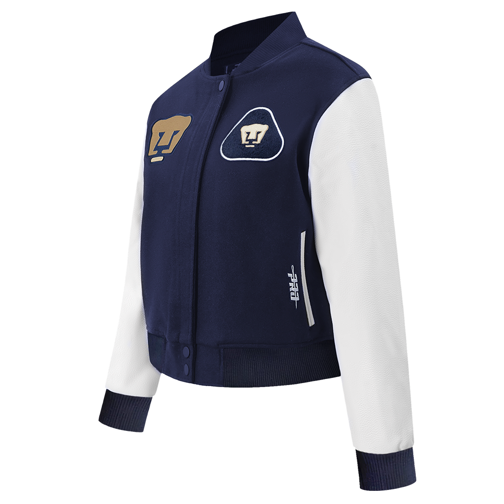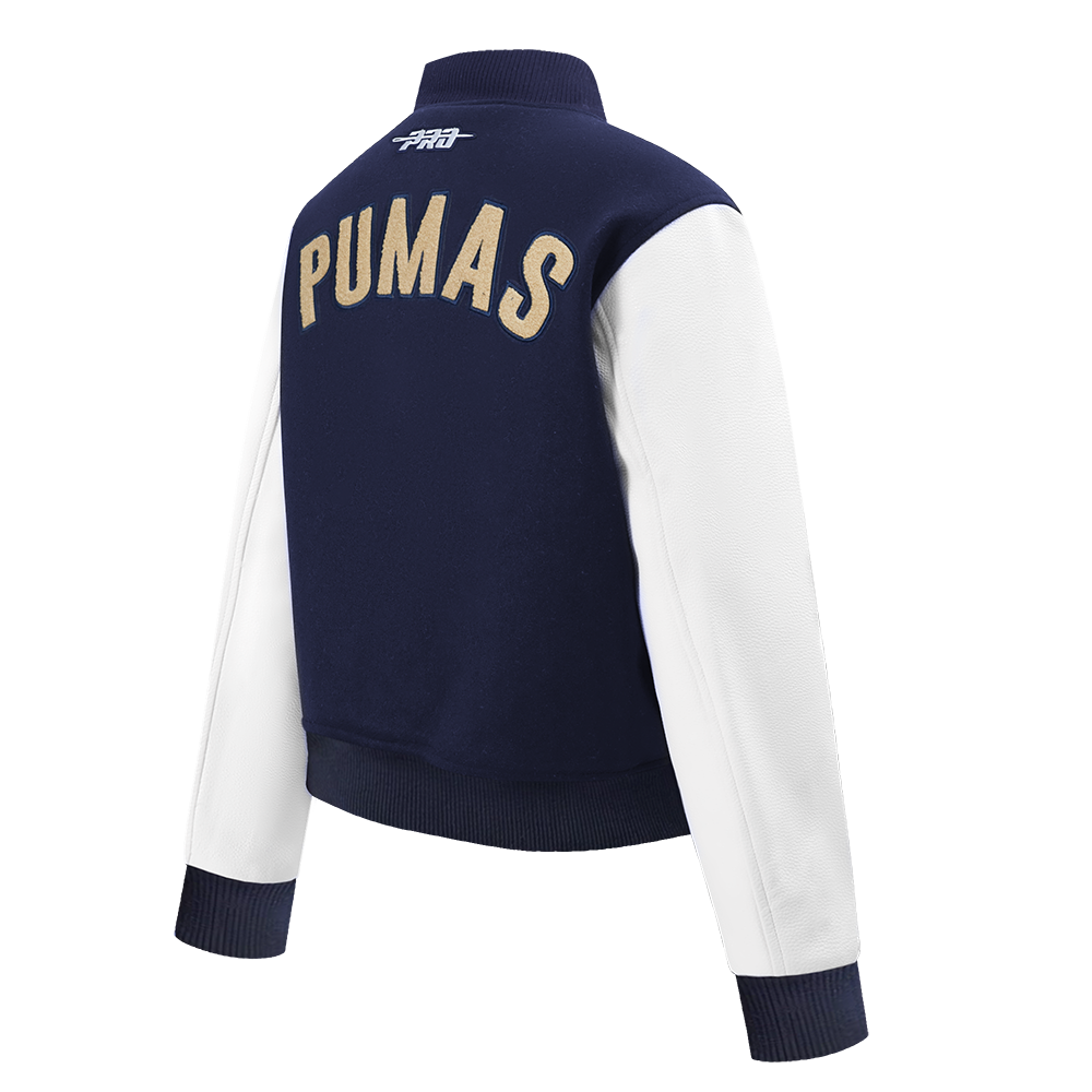 LIGA MX PUMAS UNAM CLASSIC CHENILLE WOMEN'S RIB WOOL VARSITY JACKET