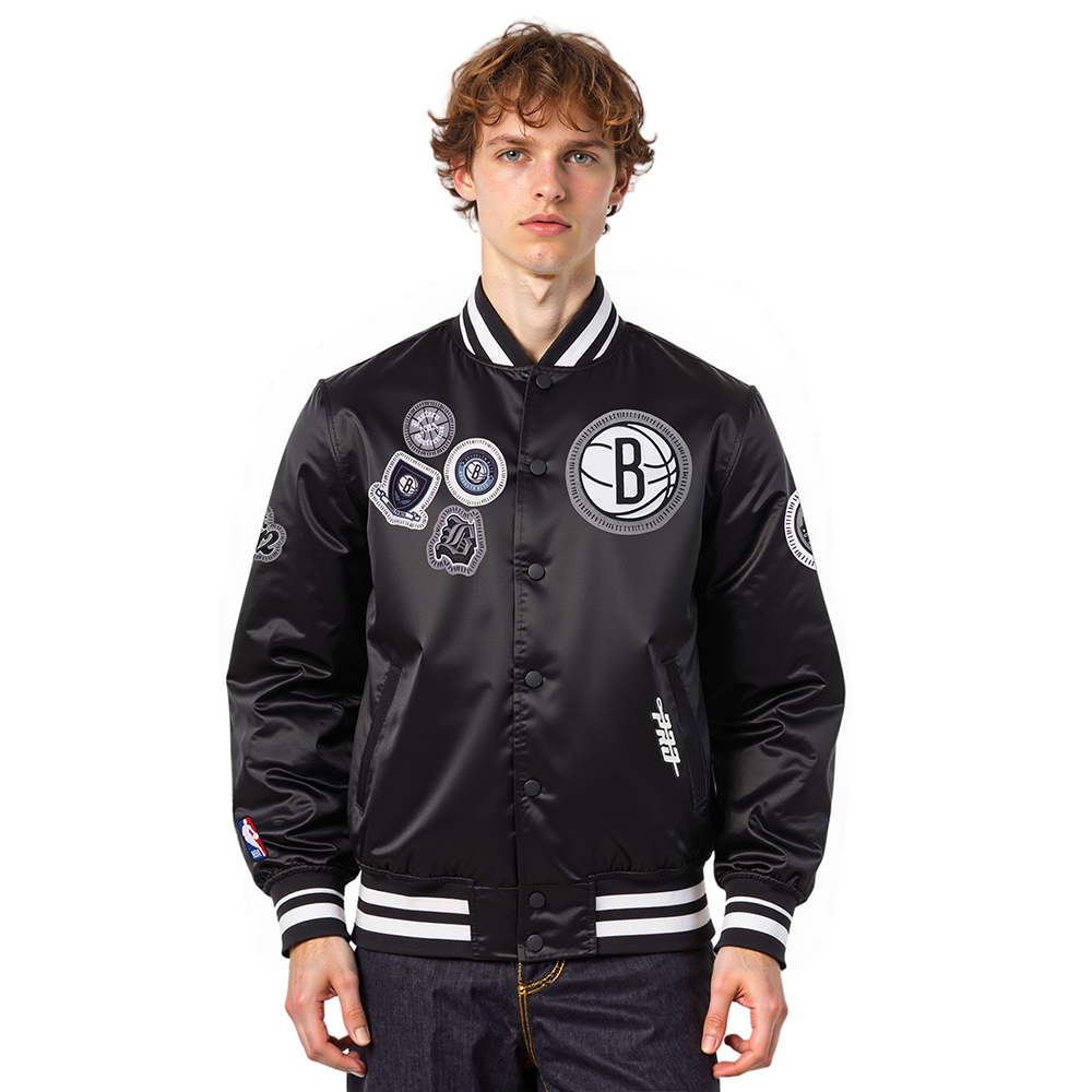 NBA BROOKLYN NETS DIY PICK STITCH MEN'S RIB SATIN JACKET
