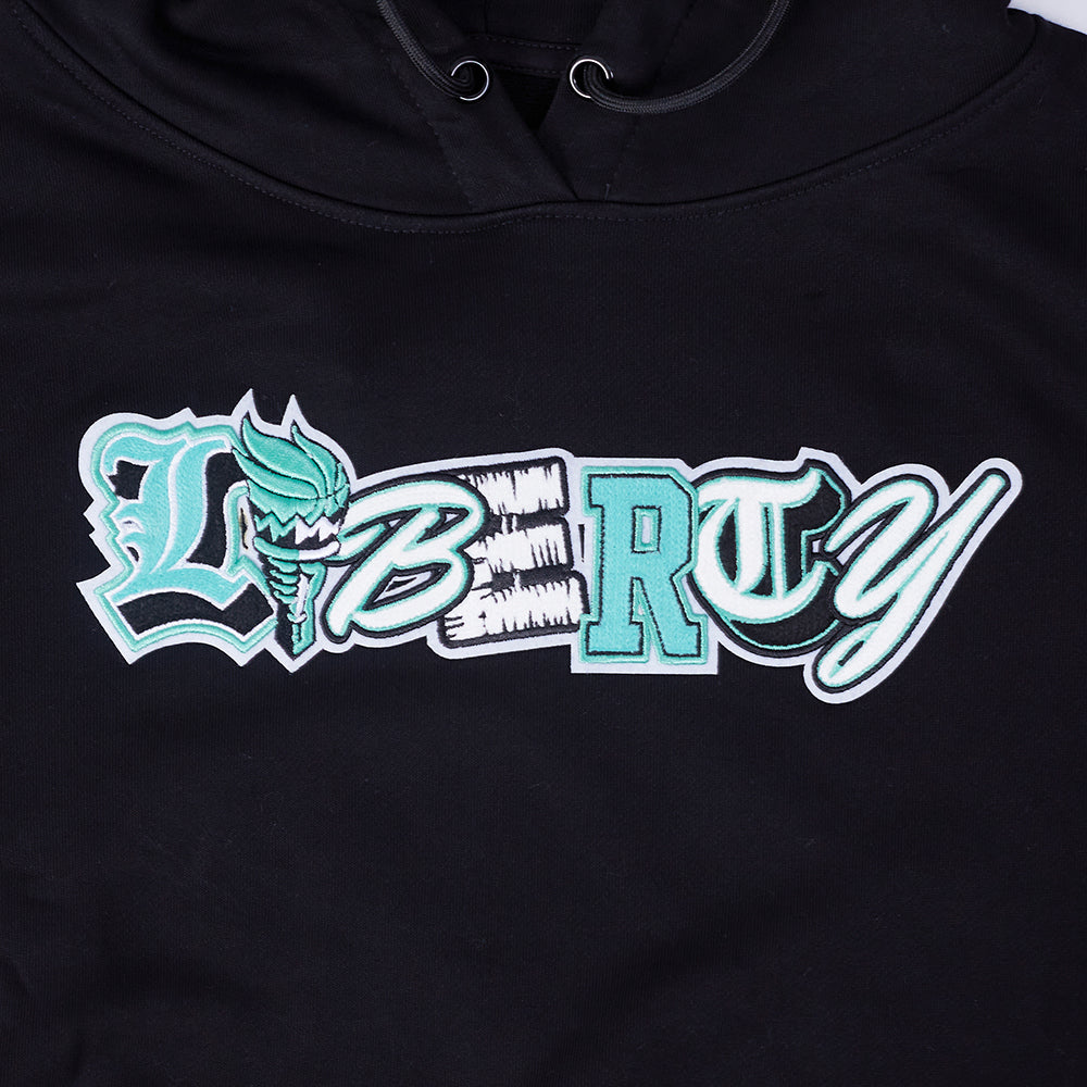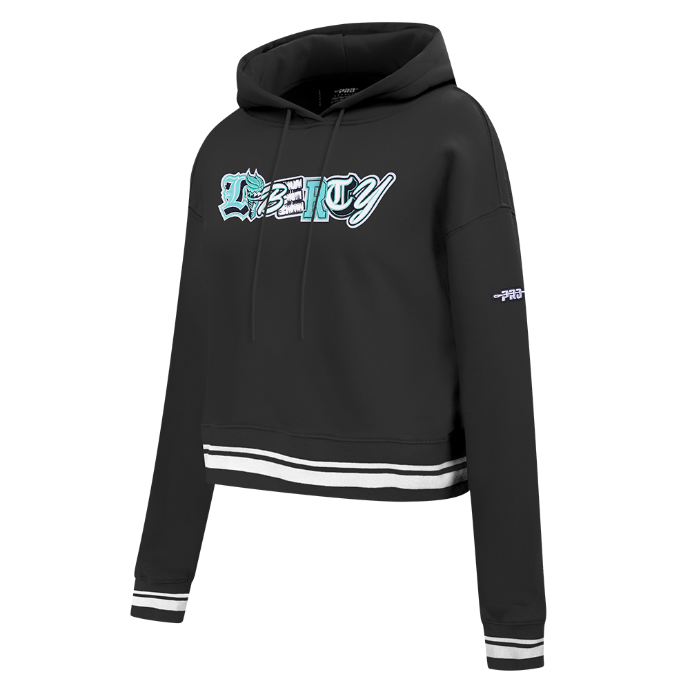 WNBA NEW YORK LIBERTY CITY RANSOM WOMEN'S RIB FLEECE CROPPED PULLOVER HOODIE