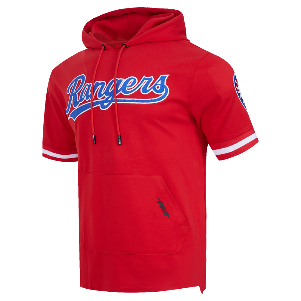 MLB TEXAS RANGERS CLASSIC CHENILLE MEN'S DOUBLE KNIT SHORT SLEEVE PULLOVER HOODIE