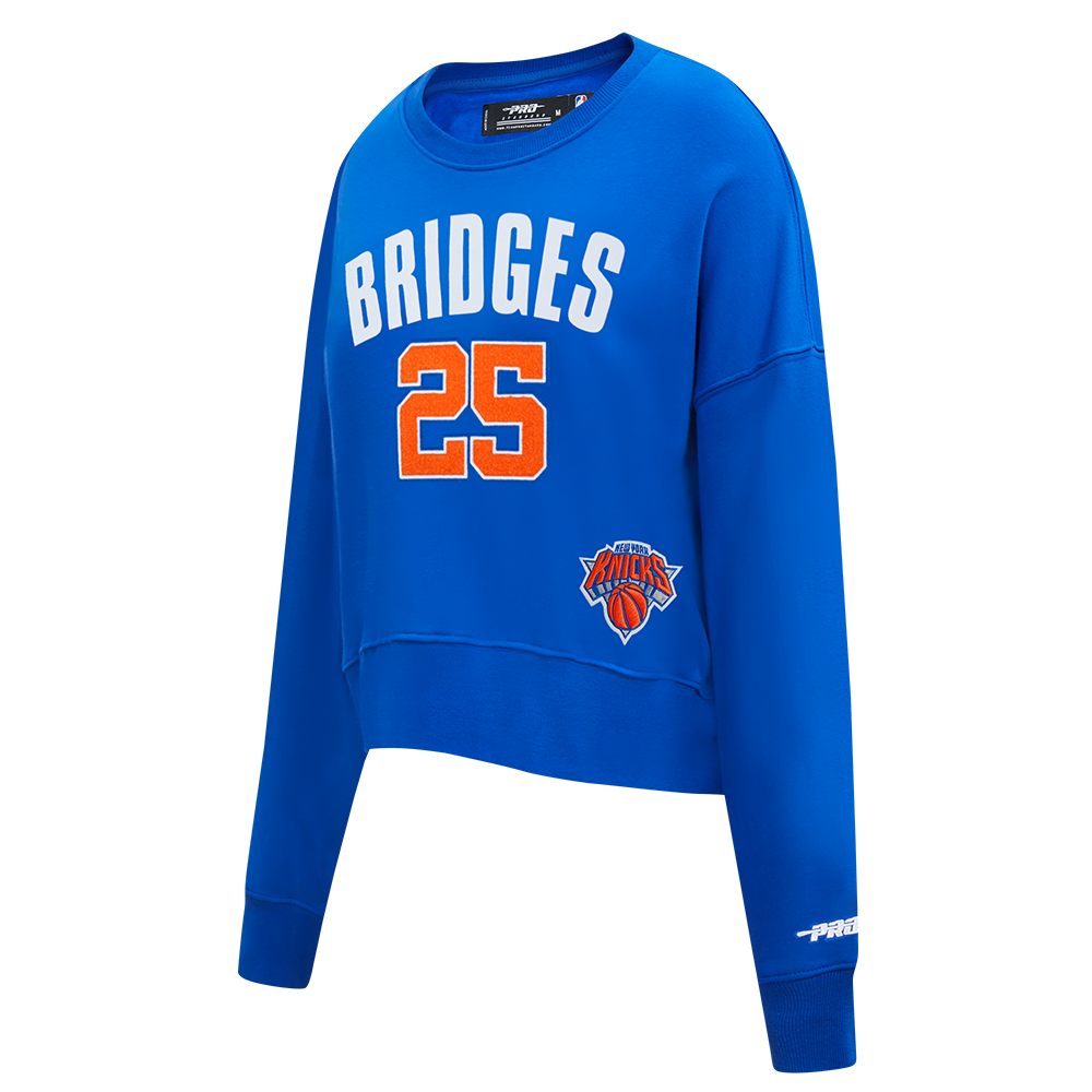 NBA NEW YORK KNICKS MIKAL BRIDGES #25 CLASSIC PLAYER NAME AND NUMBER WOMEN'S FLC CREWNECK