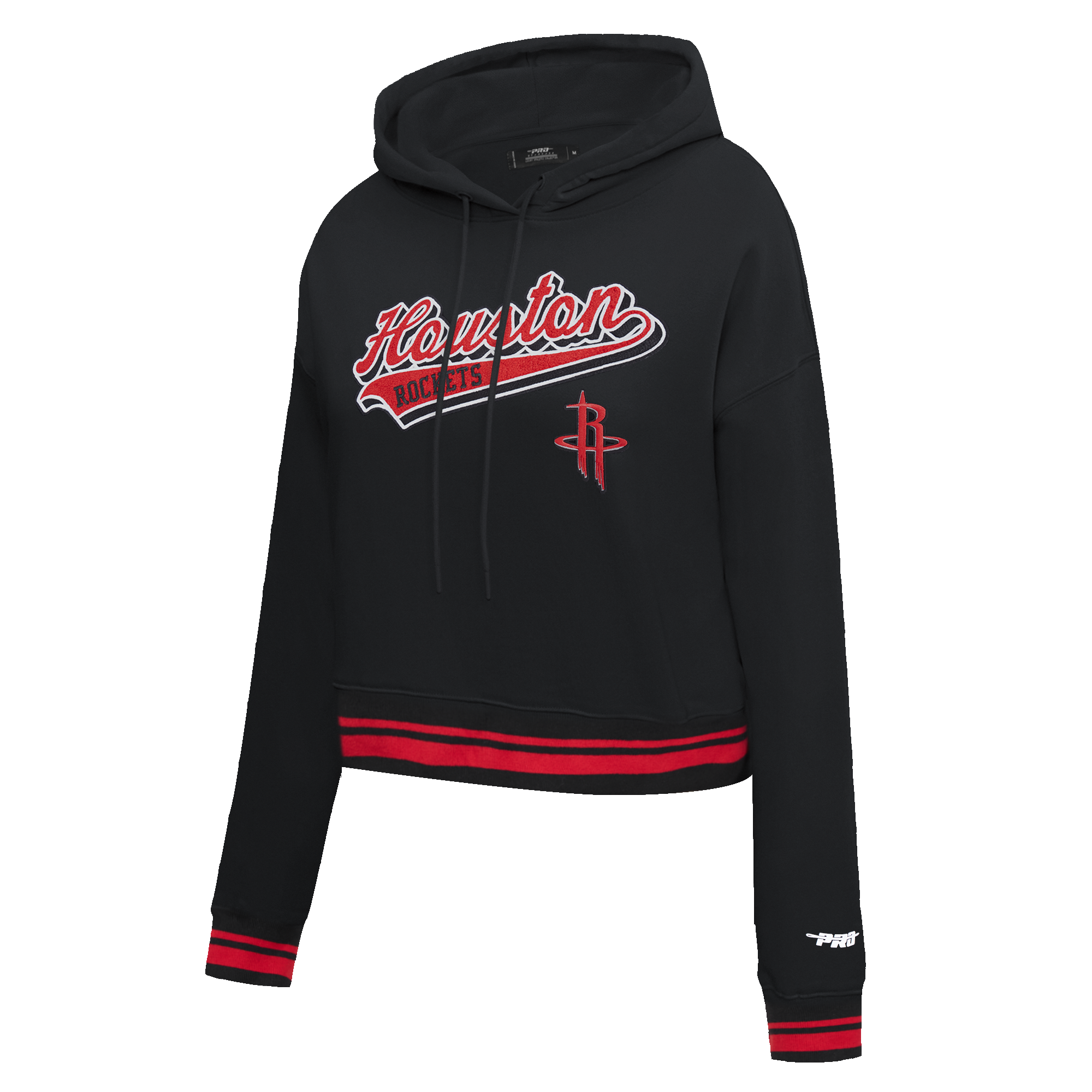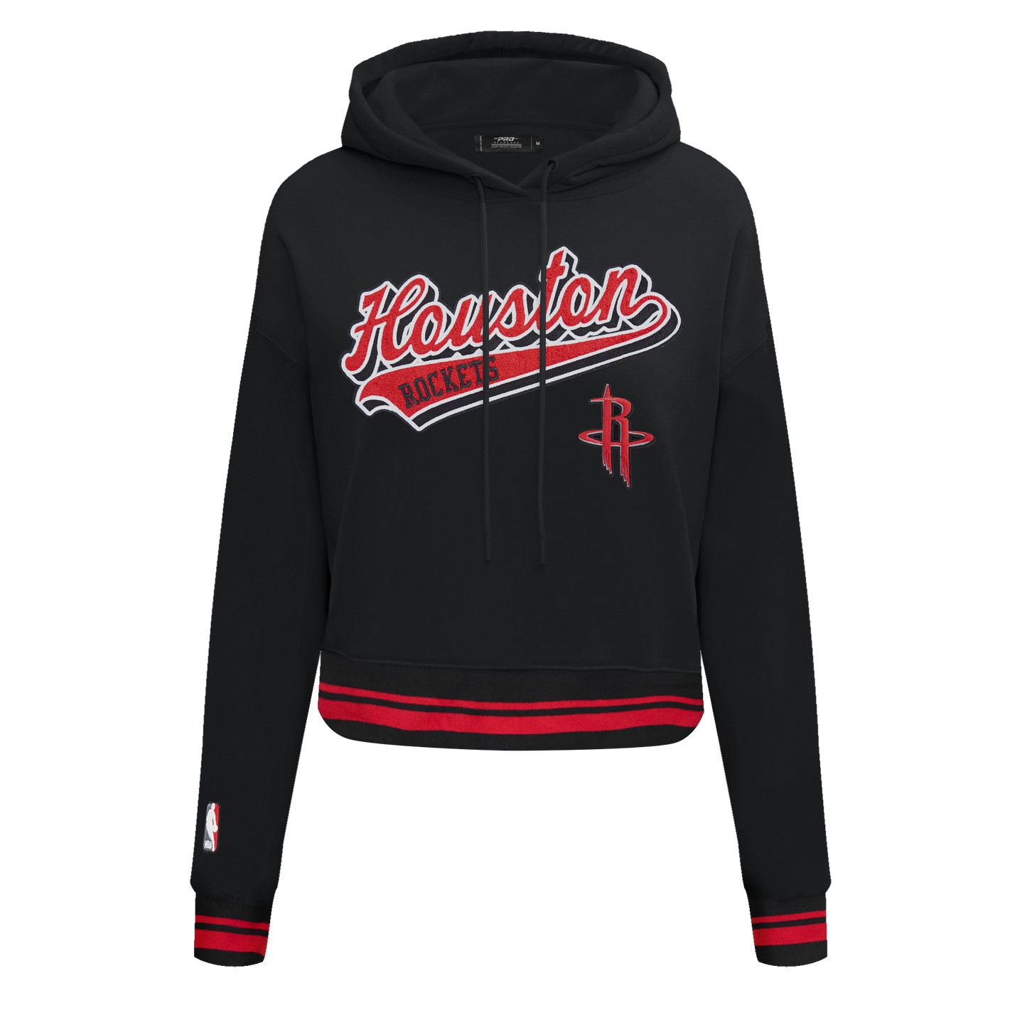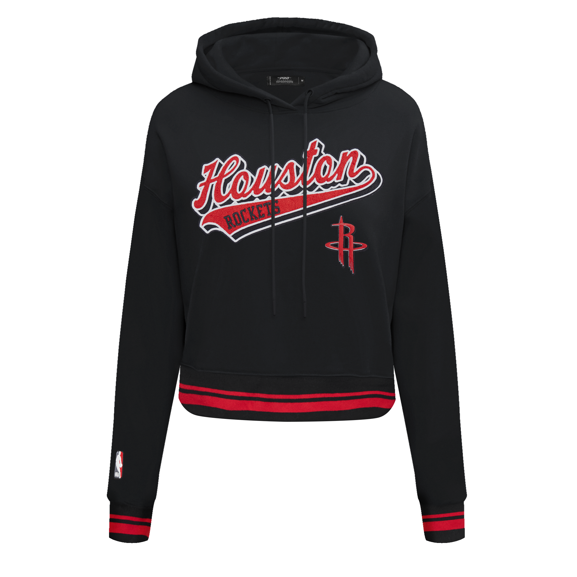 NBA HOUSTON ROCKETS SCRIPT TAIL WOMEN'S RIB FLEECE CROPPED PULLOVER HOODIE