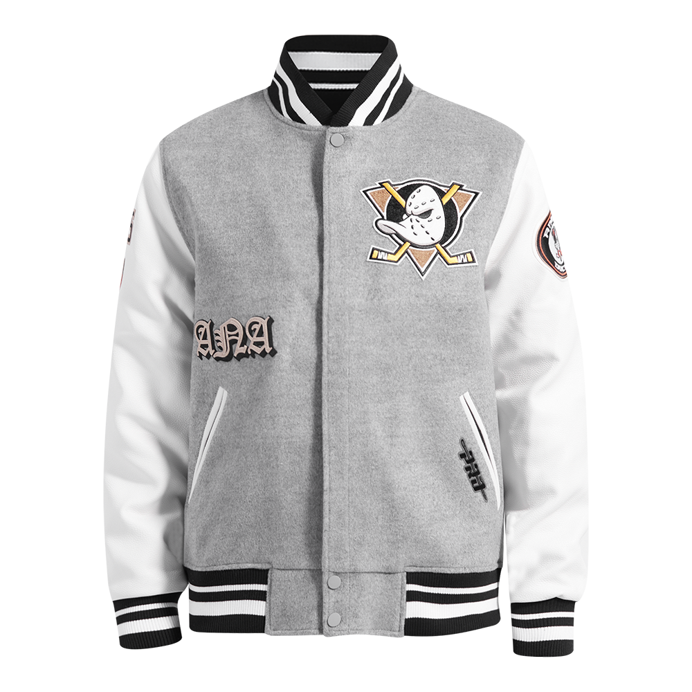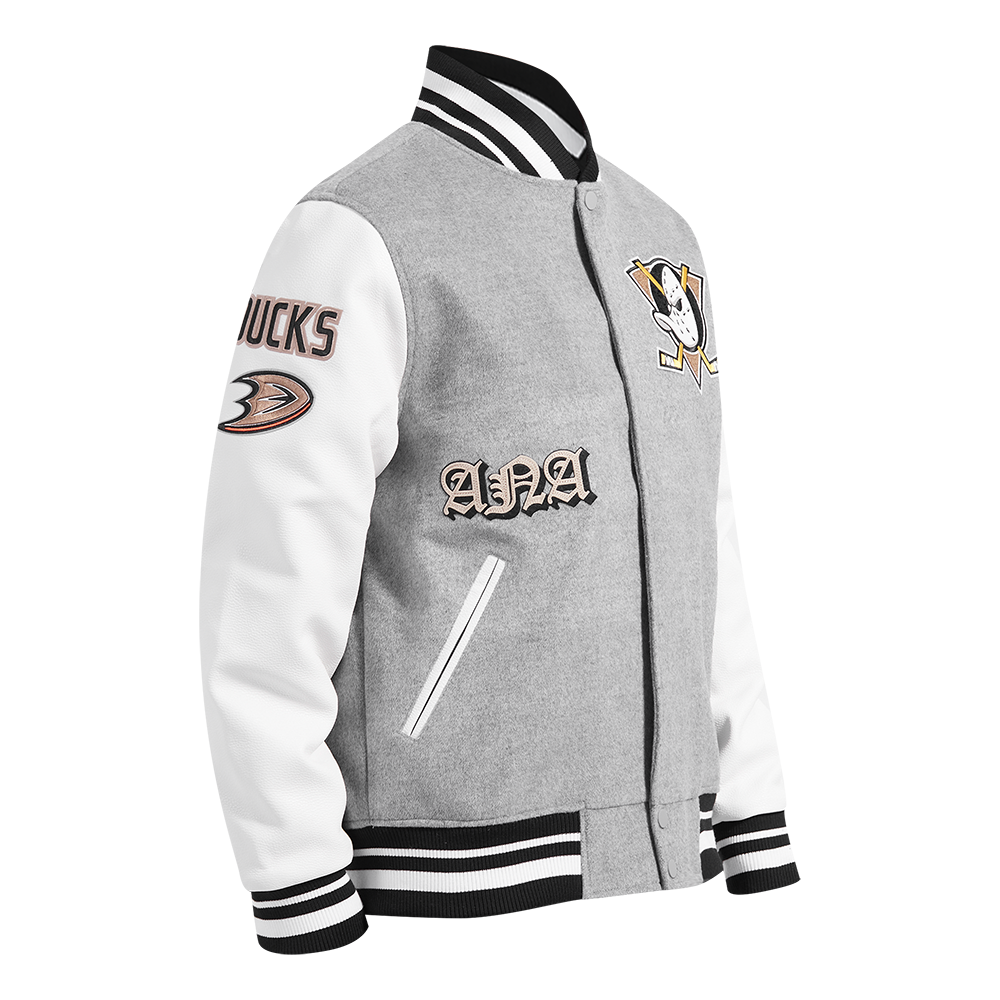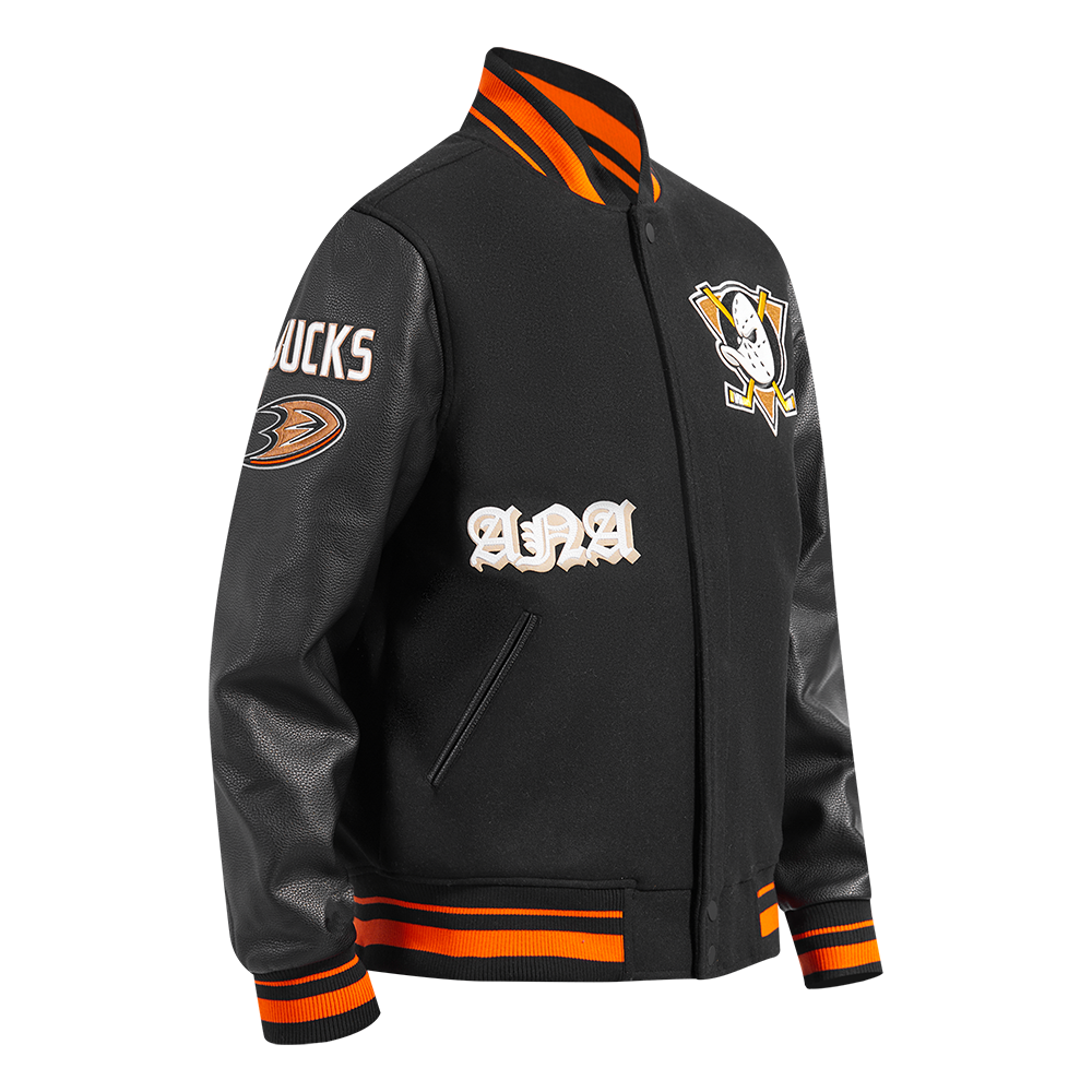 NHL ANAHEIM DUCKS OLD ENGLISH MEN'S RIB WOOL VARSITY JACKET