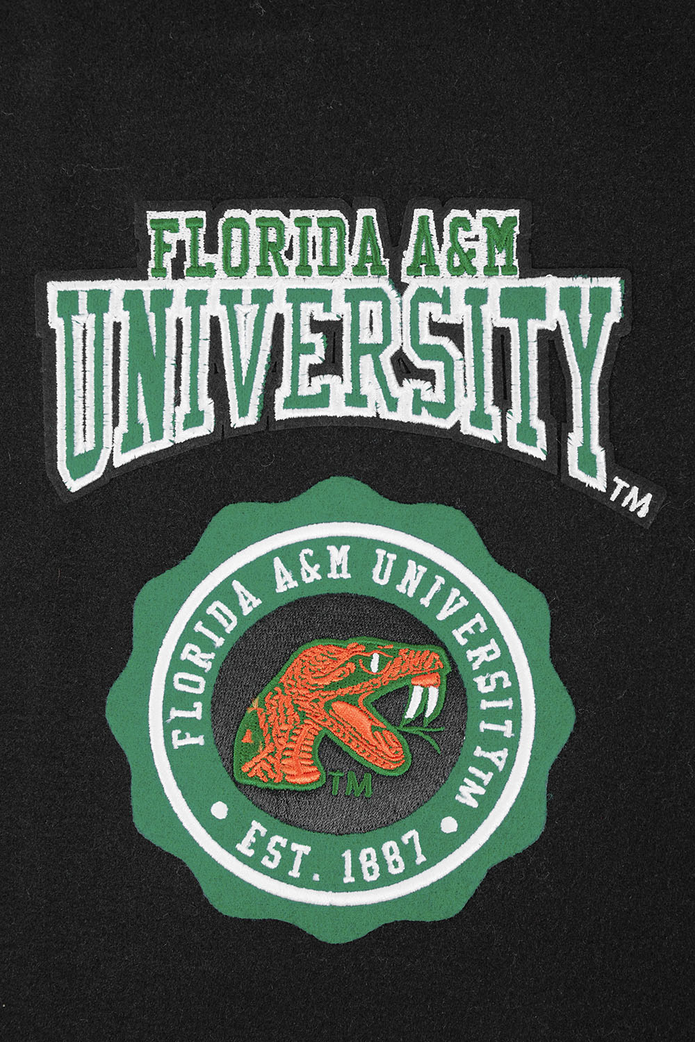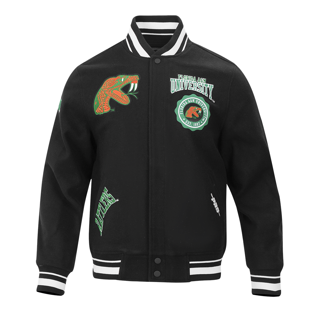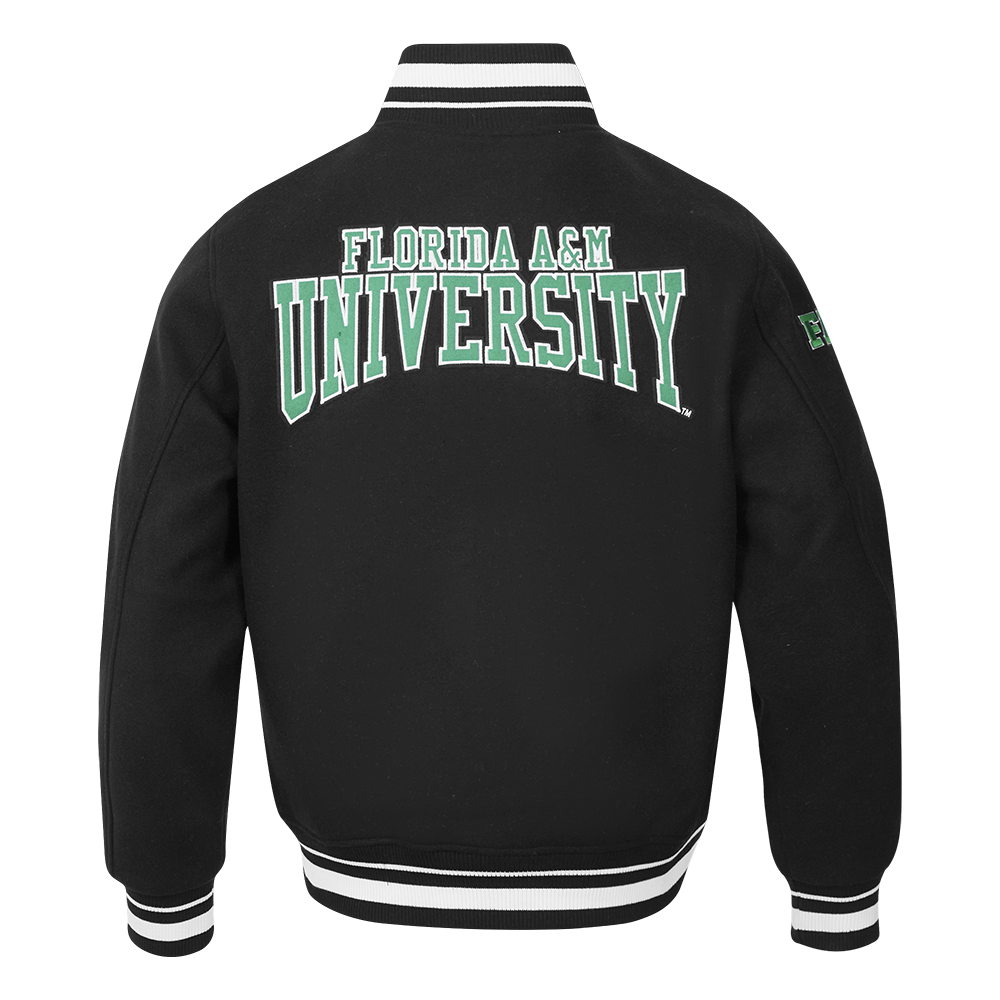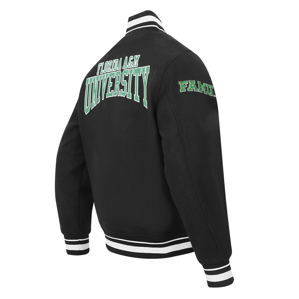 COLLEGE FLORIDA A&M UNIVERSITY CREST EMBLEM MEN'S RIB WOOL VARSITY JACKE