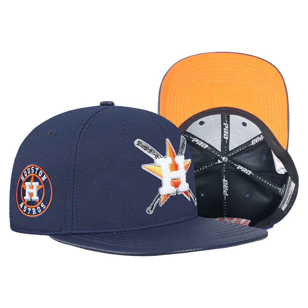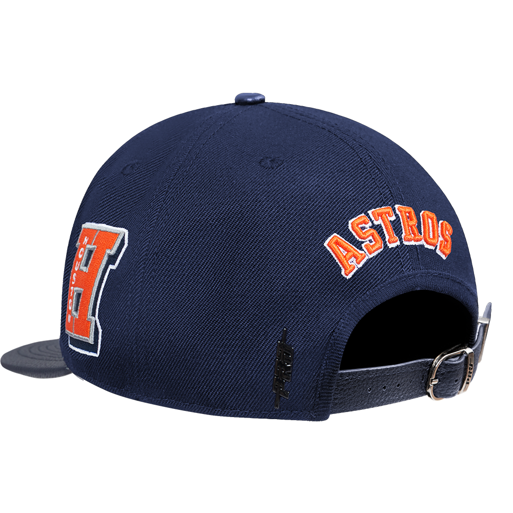 The Pro Standard Premium MLB Houston Astros Mashup Unisex Wool Leather Strapback Hat (Midnight Navy)