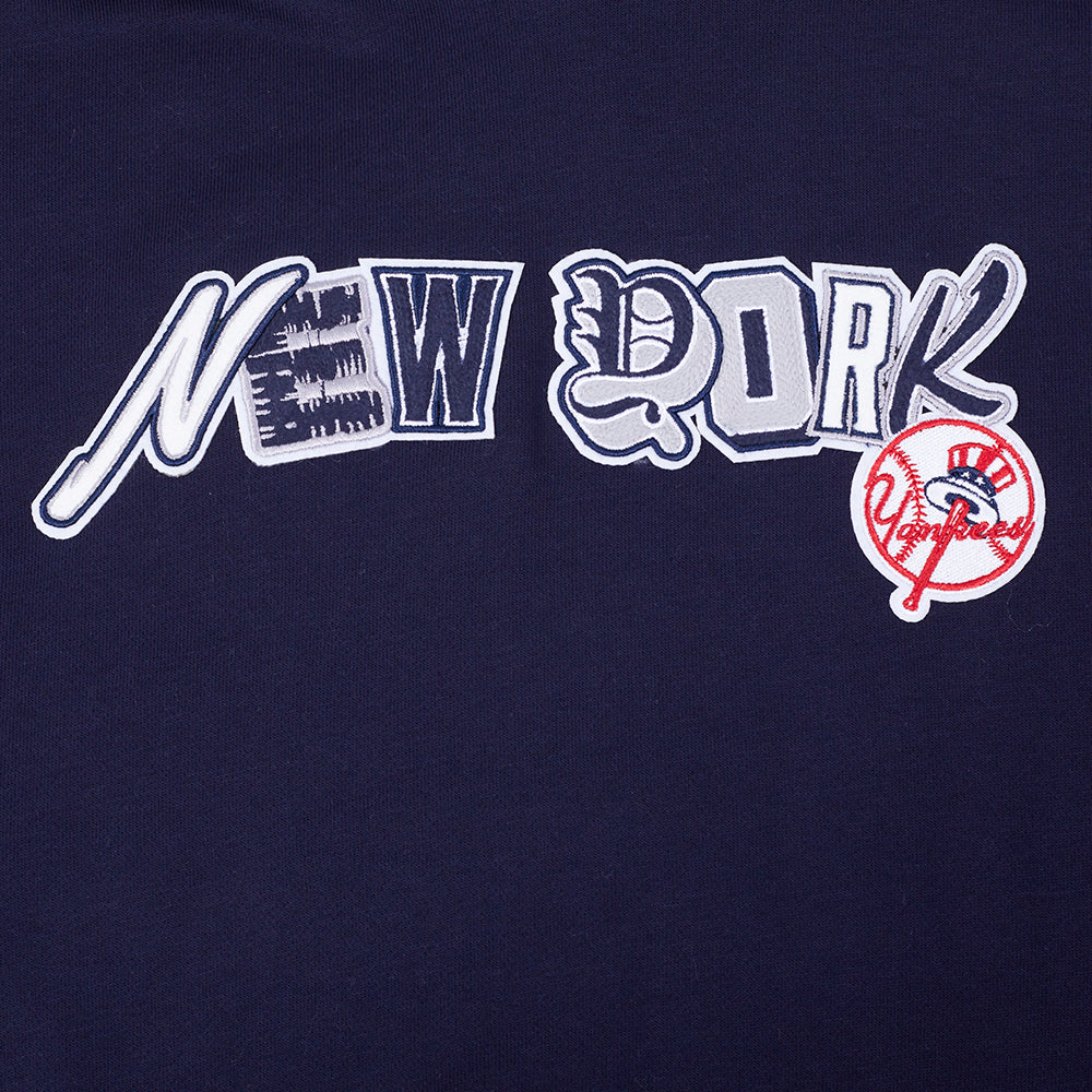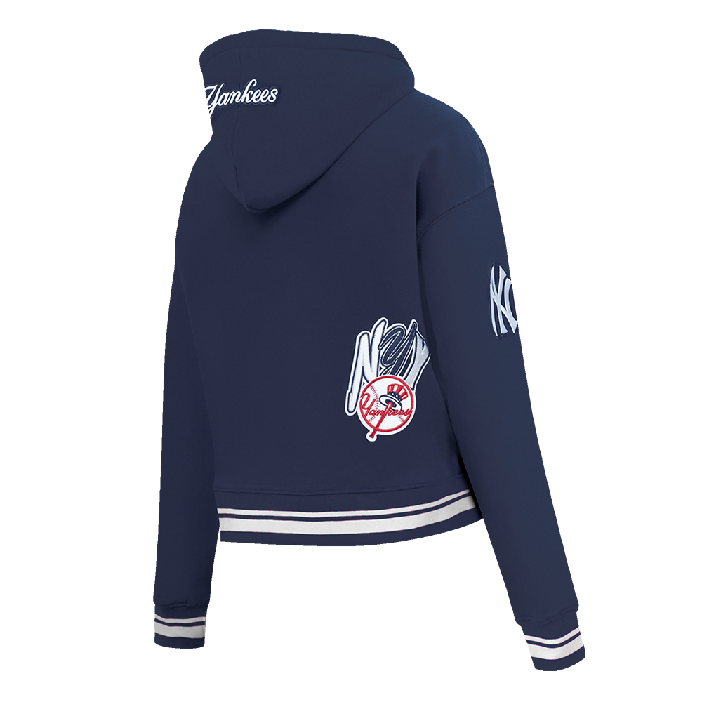MLB NEW YORK YANKEES CITY RANSOM WOMEN'S RIB FLEECE CROPPED PULLOVER HOODIE