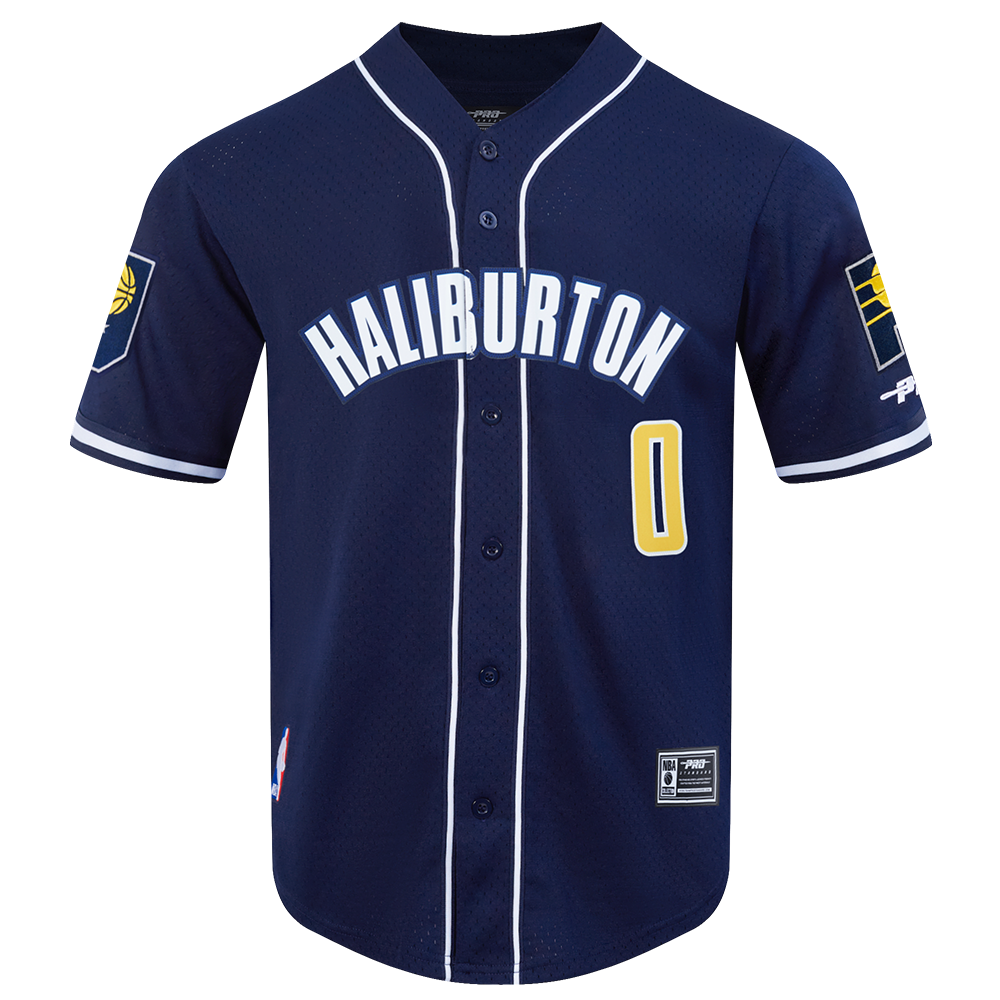 NBA INDIANA PACERS TYRESE HALIBURTON #0 CLASSIC MESH PNN MEN'S MESH BUTTON DOWN SHIRT