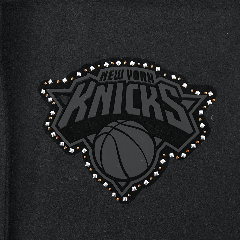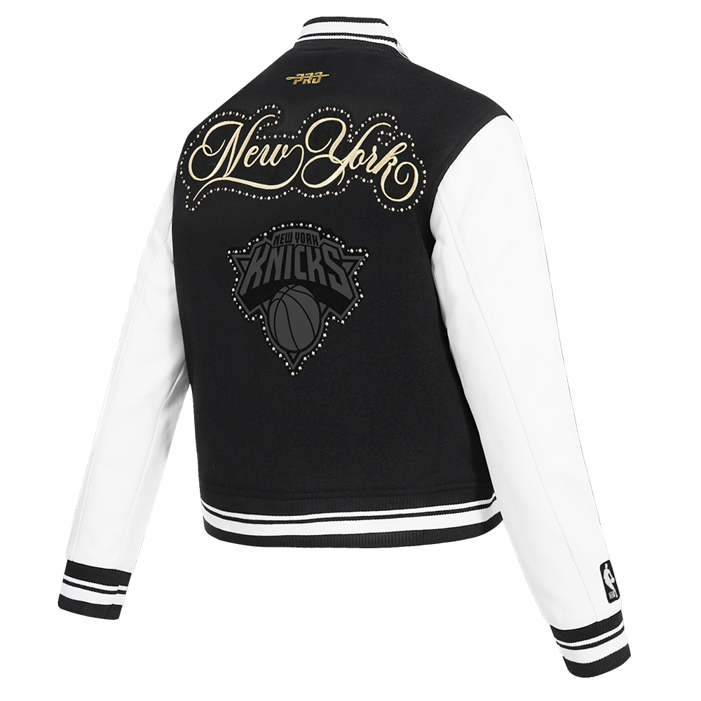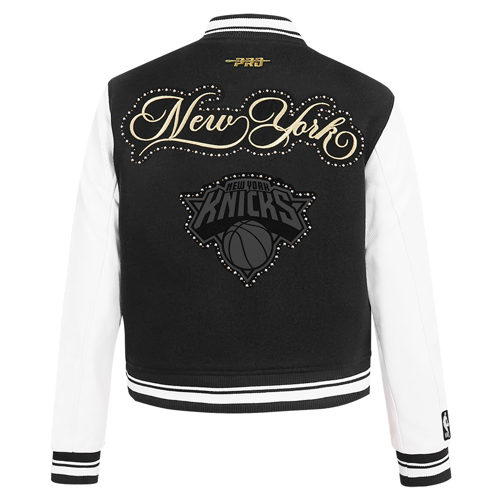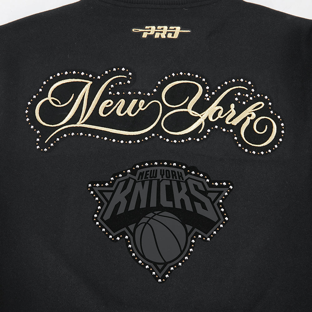 NBA NEW YORK KNICKS RENEGADE WOMEN'S RIB CROPPED WOOL VARSITY JACKET