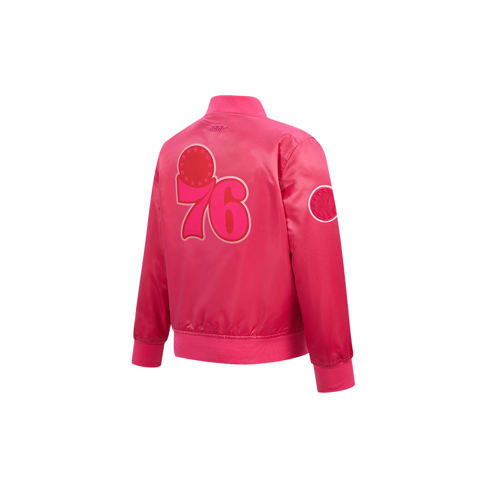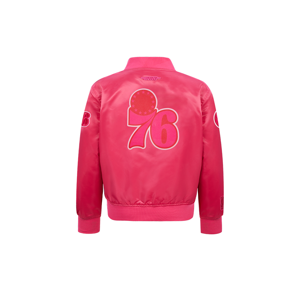 NBA PHILADELPHIA 76ERS TRIPLE PINK LITTLE GIRLS SATIN JACKET