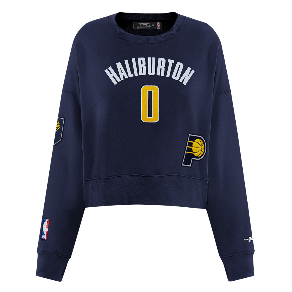 NBA INDIANA PACERS TYRESE HALIBURTON #0 CLASSIC PNN WOMEN'S FLC CREWNE (MIDNIGHT NAVY)