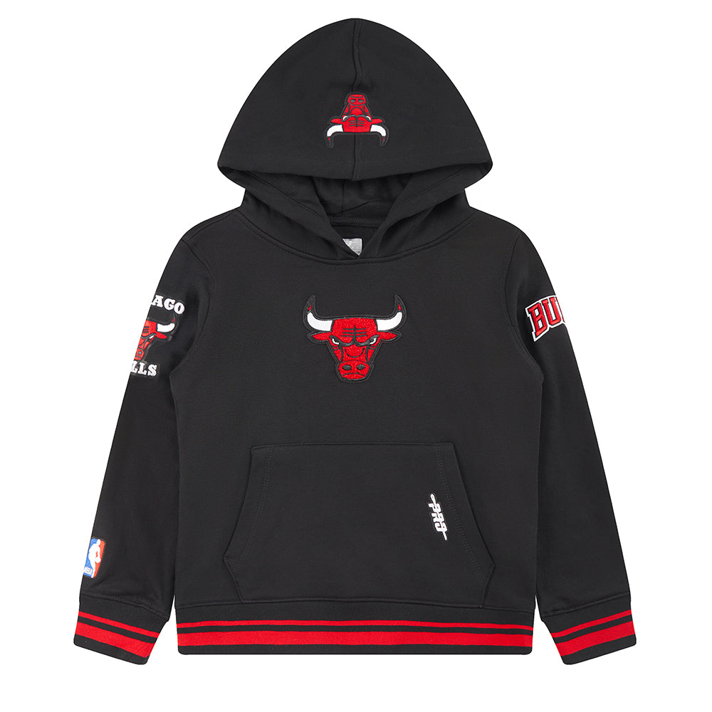 NBA CHICAGO BULLS RETRO CLASSIC LITTLE BOYS RIB FLEECE PULLOVER HOODIE (BLACK/RED/BLACK)