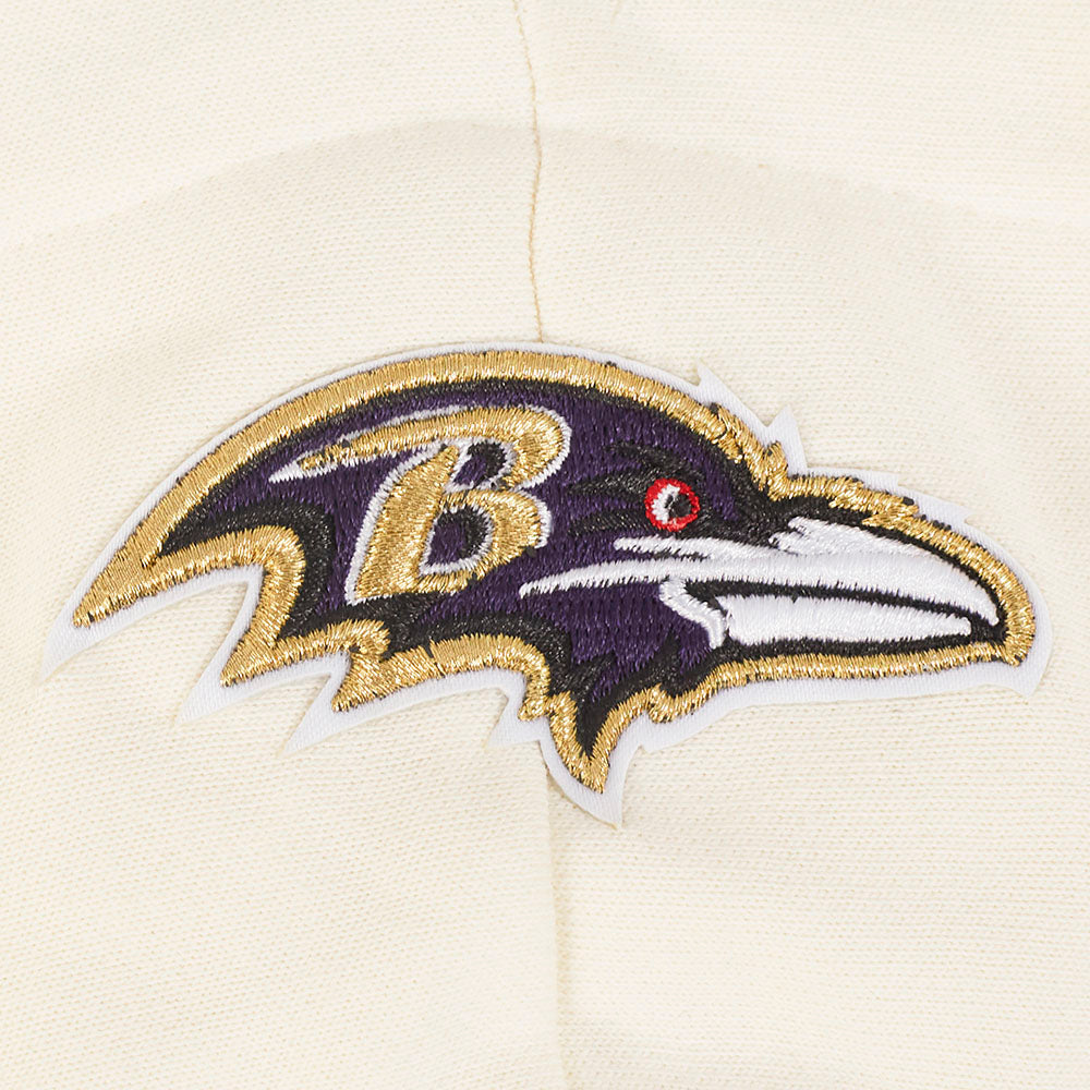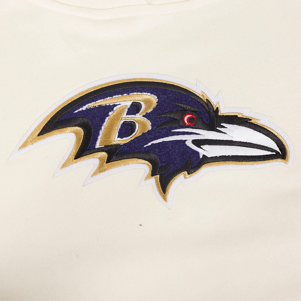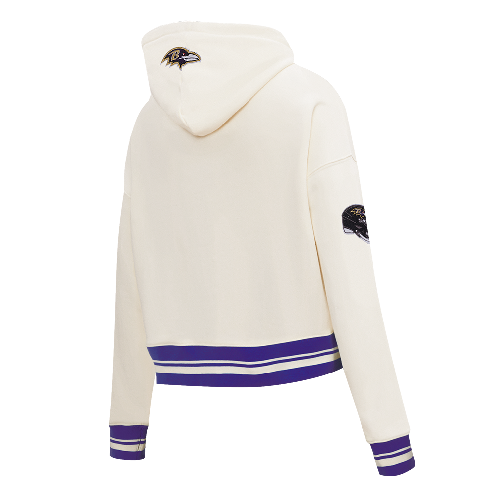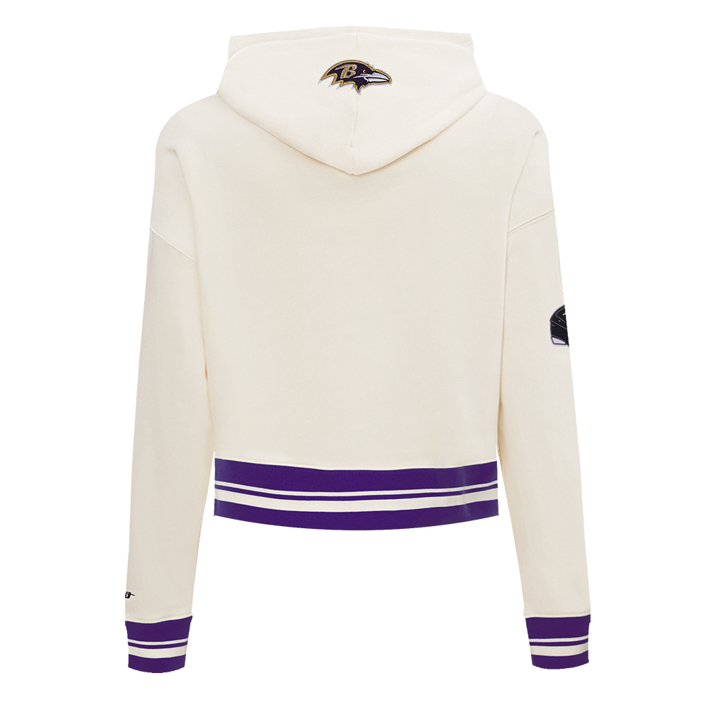 The Pro Standard Premium NFL Baltimore Ravens Retro Classic WoMen's Cropped PO Hoodie (Eggshell/ Purple)