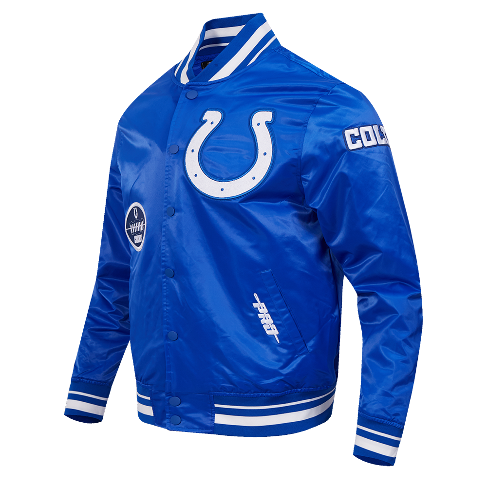 The Pro Standard Premium NFL Indianapolis Colts Old English Men's Rib Satin Jacket (Royal Blue)