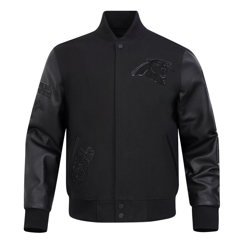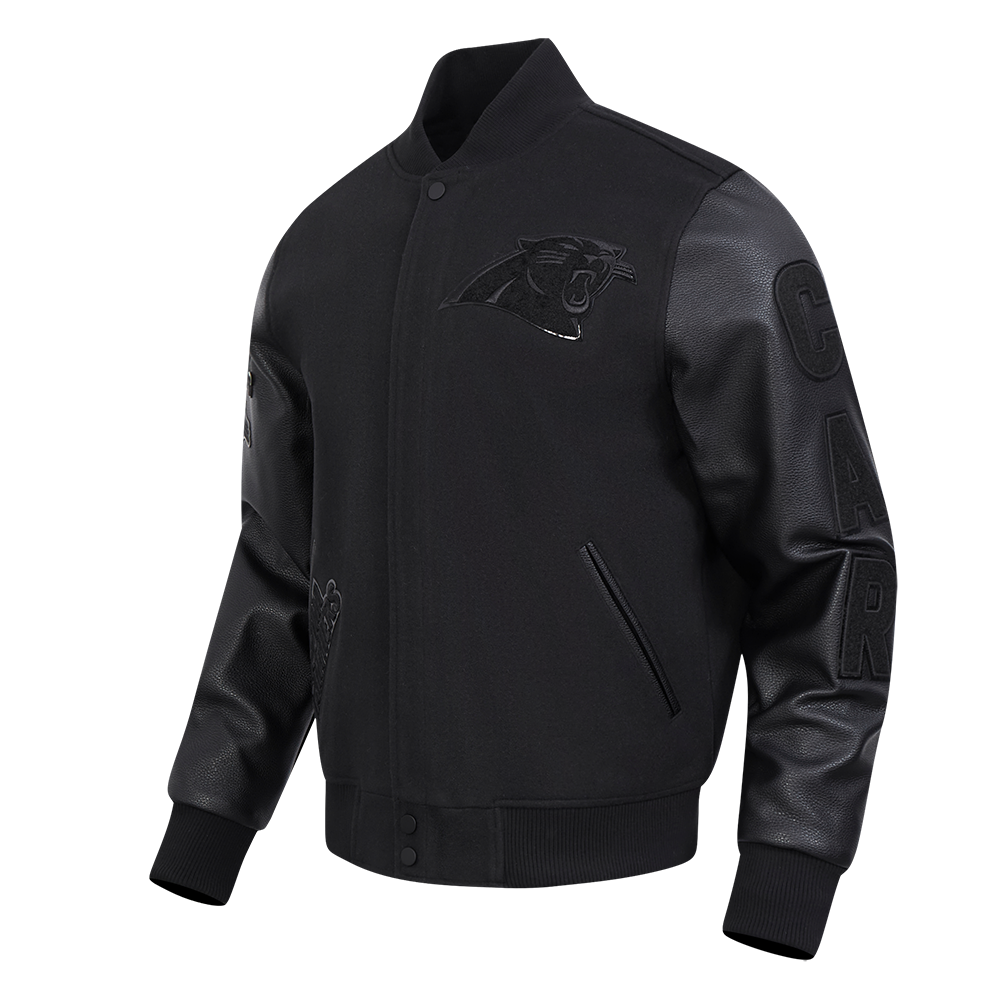NFL CAROLINA PANTHERS TRIPLE BLACK WOOL MEN'S VARSITY JACKET