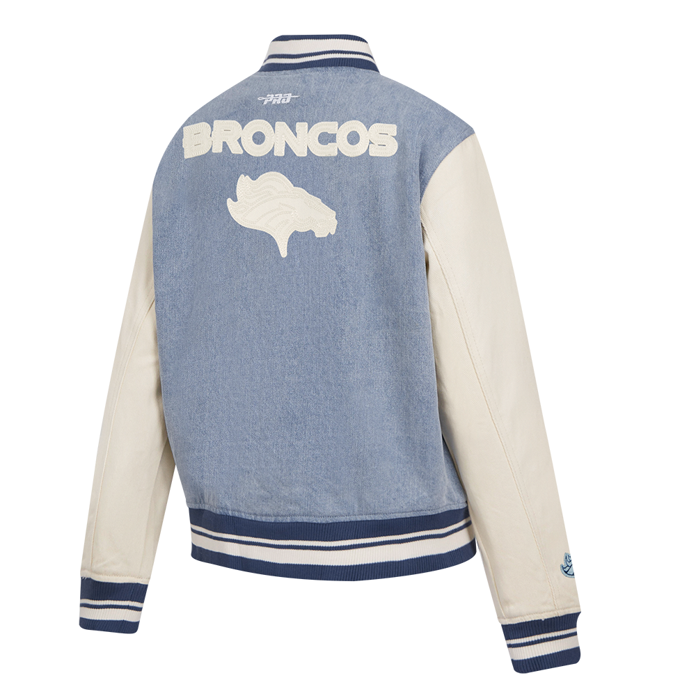 NFL DENVER BRONCOS VARSITY BLUES WOMEN'S DENIM VARSITY JACKET