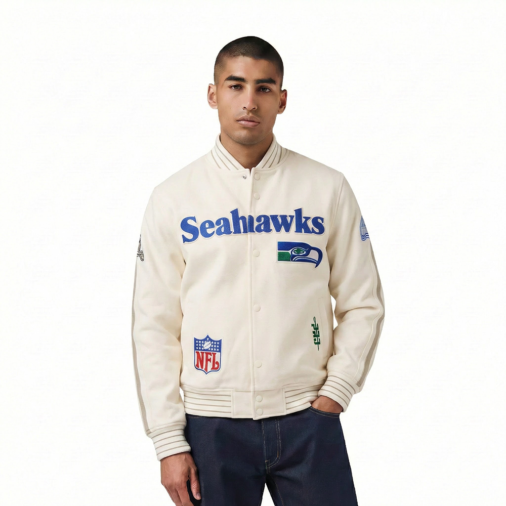 NFL SEATTLE SEAHAWKS RETRO PRO GAME DAY JACKET MEN'S RIB DBL KNIT JACKET