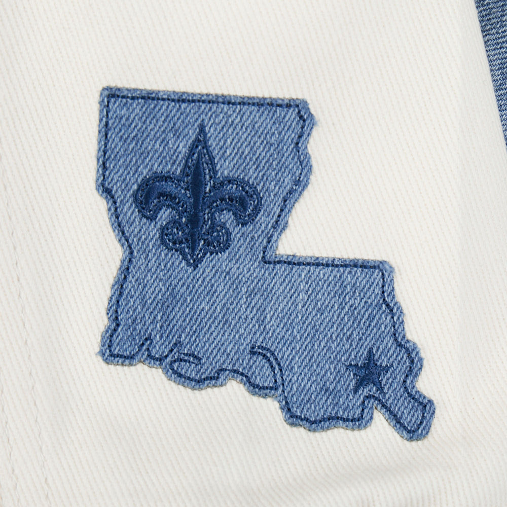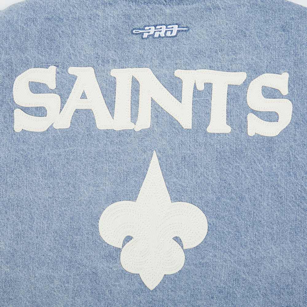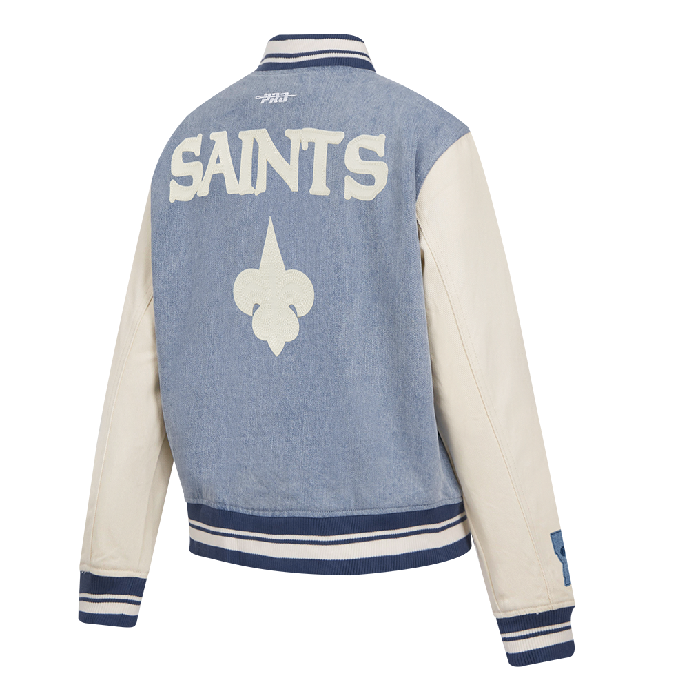 NFL NEW ORLEANS SAINTS VARSITY BLUES WOMEN'S DENIM VARSITY JACKET
