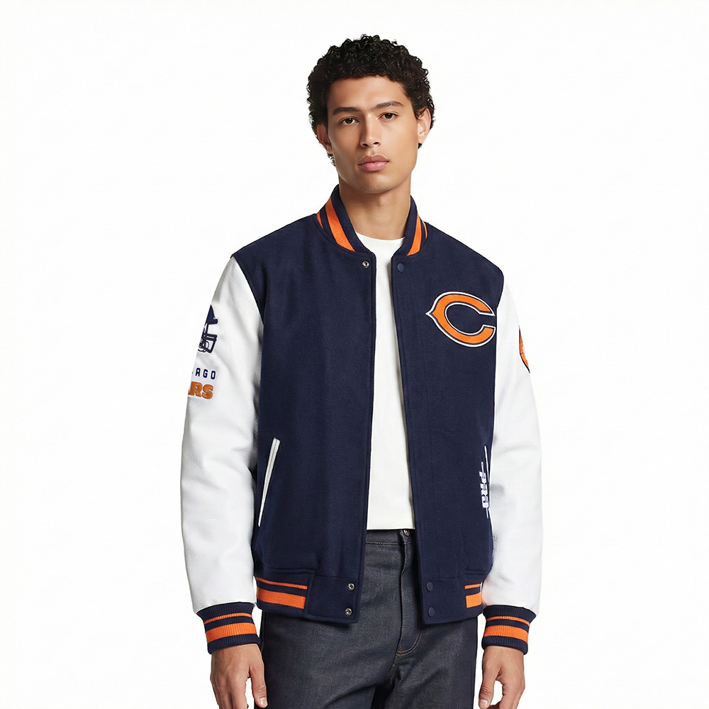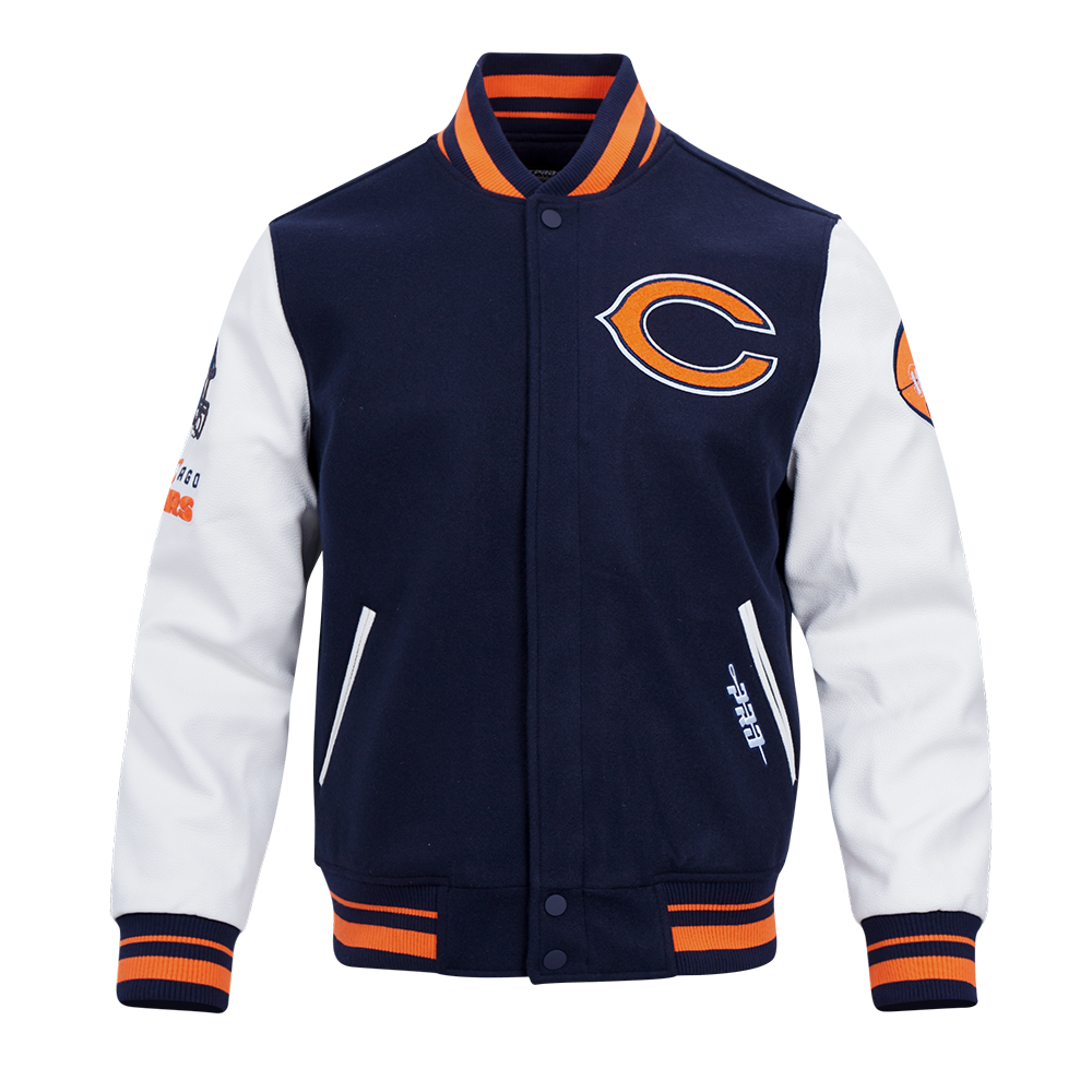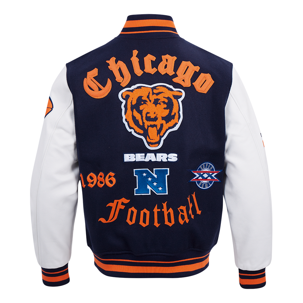 NFL CHICAGO BEARS OLD ENGLISH MEN'S RIB WOOL VARSITY JACKET