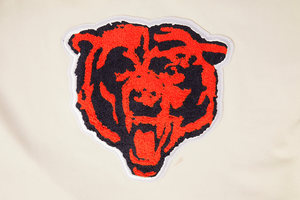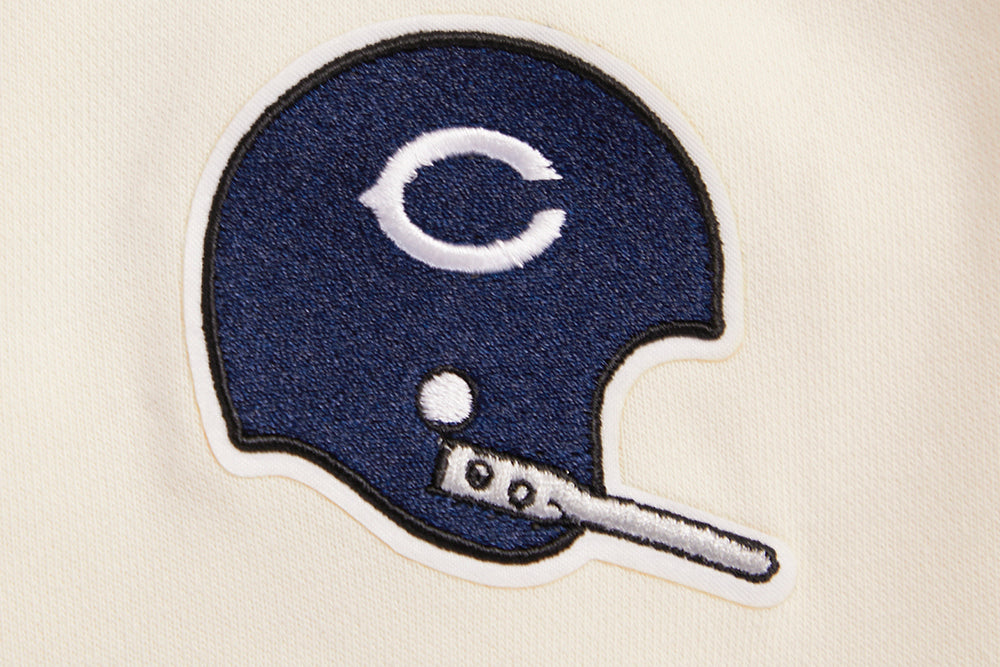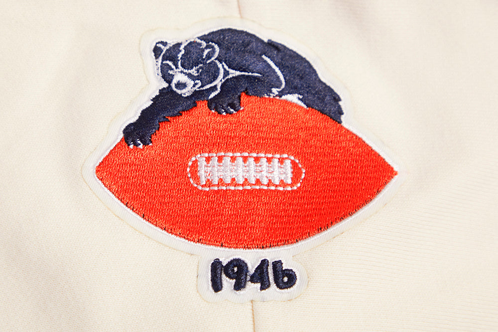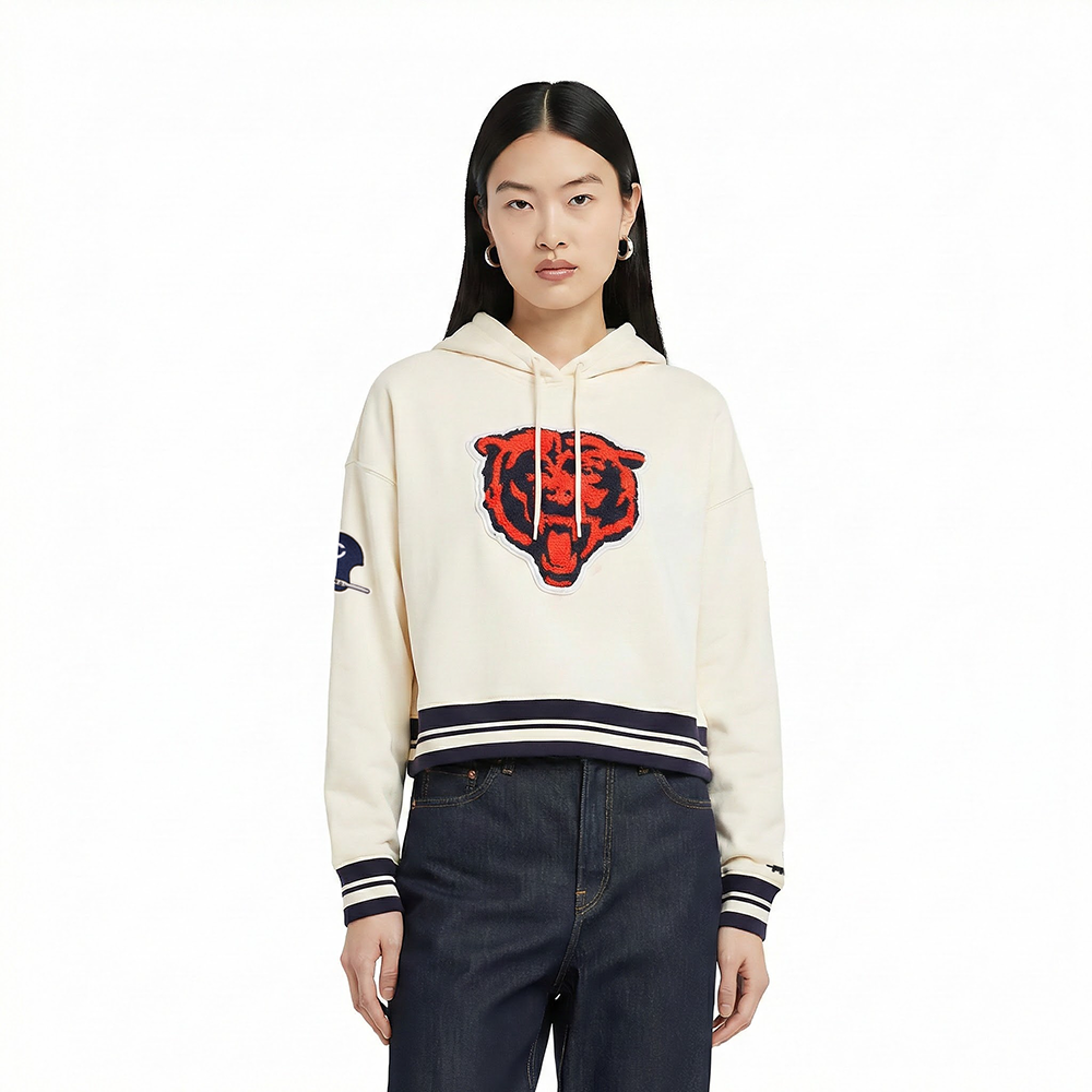 Pro Standard Chicago Bears Retro Classic Cropped Hoodie in eggshell/midnight navy — a premium women's NFL cropped hoodie from the Retro Classic collection featuring heritage-inspired team graphics with retro patches and championship details.