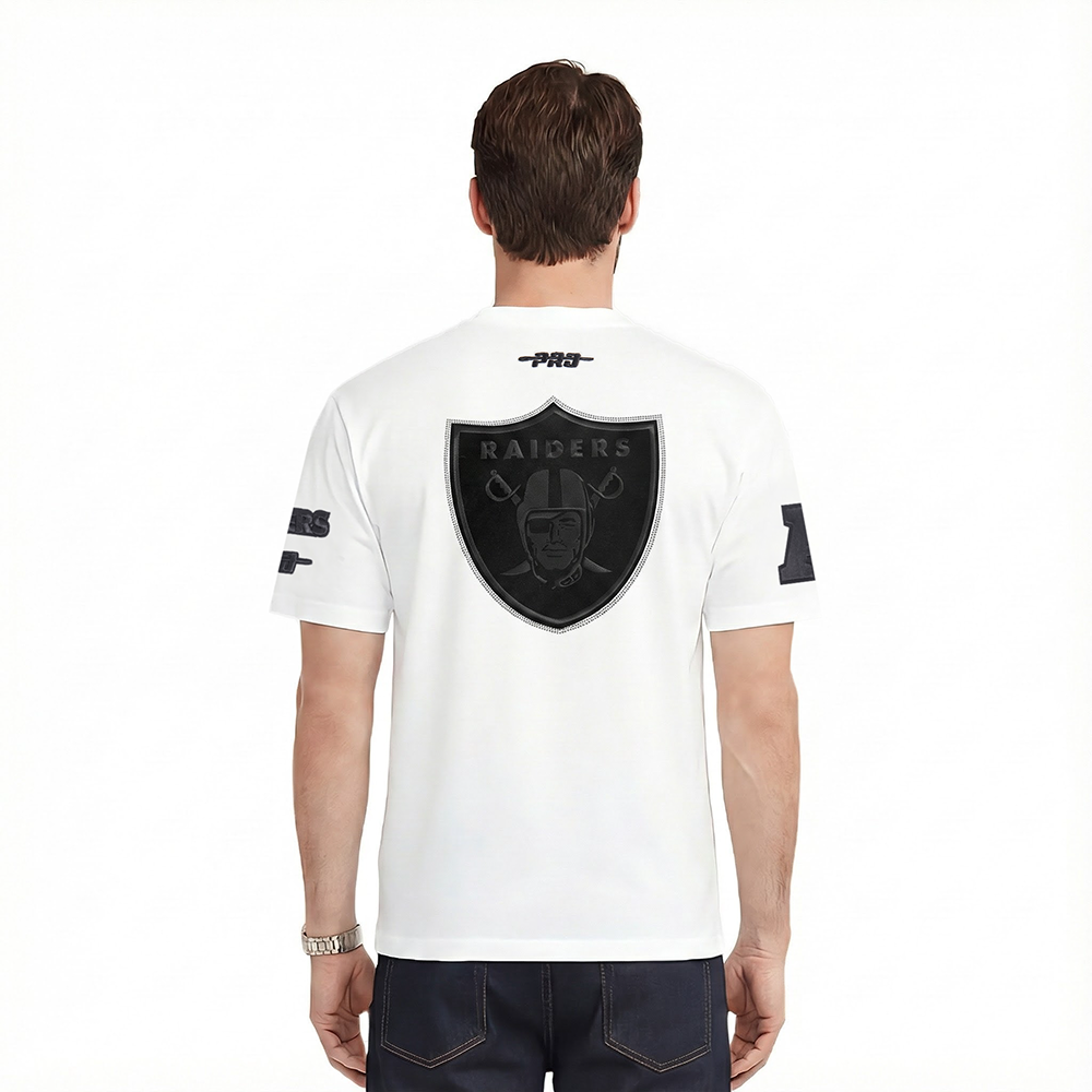 Pro Standard Las Vegas Raiders Nan Tee in white — a men's NFL tee from the Nan collection featuring premium Las Vegas Raiders team graphics.
