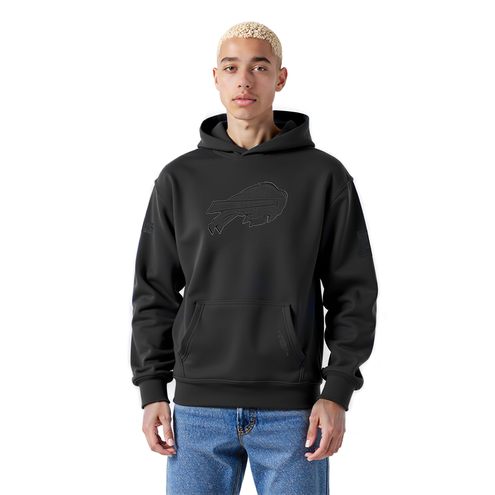 NFL BUFFALO BILLS BLACKOUT MEN'S DROP SHOULDER FLC PO HOODIE (BLACK)
