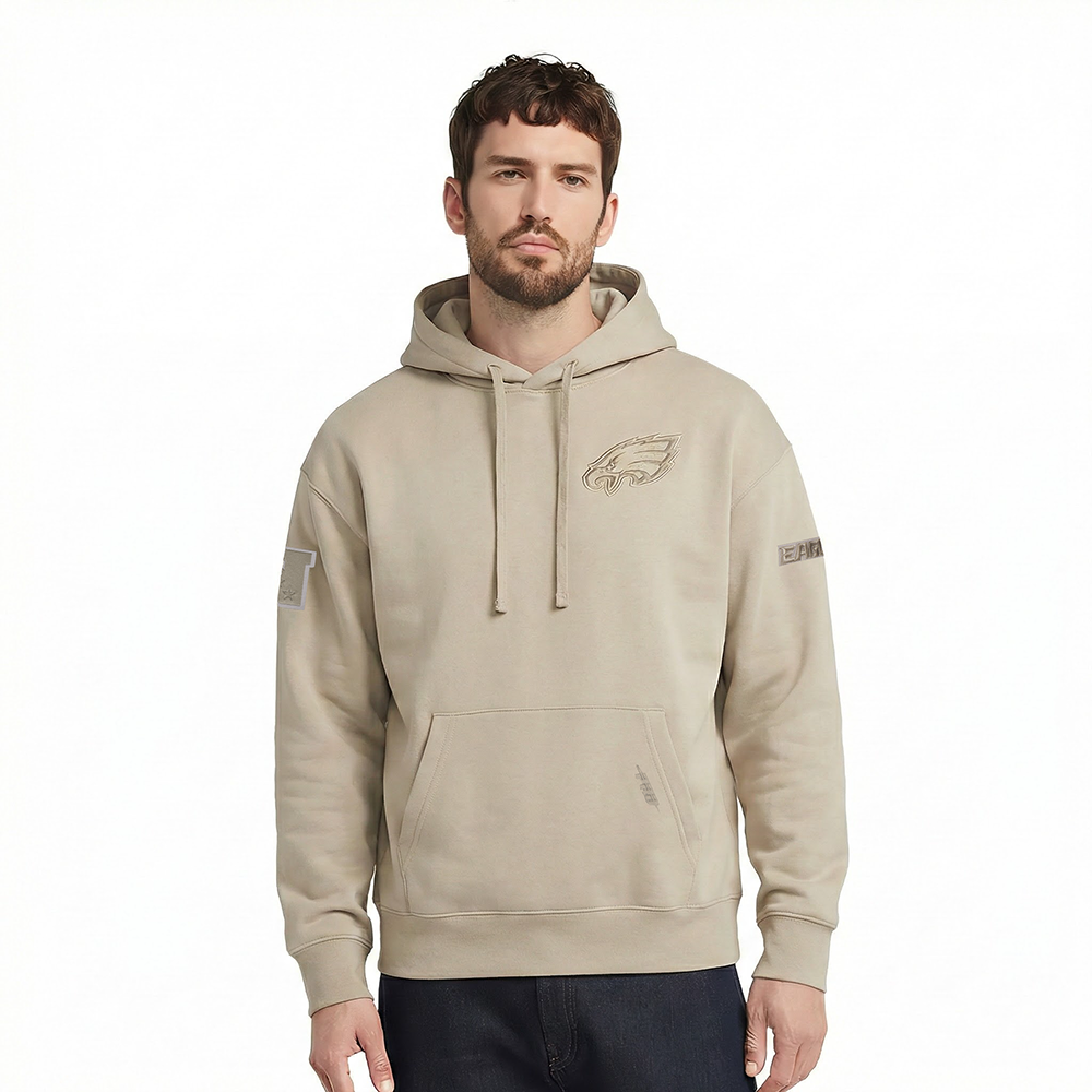 NFL PHILADELPHIA EAGLES NEUTRAL DROP SHOULDER FLEECE PULLOVER HOODIE (TAUPE)