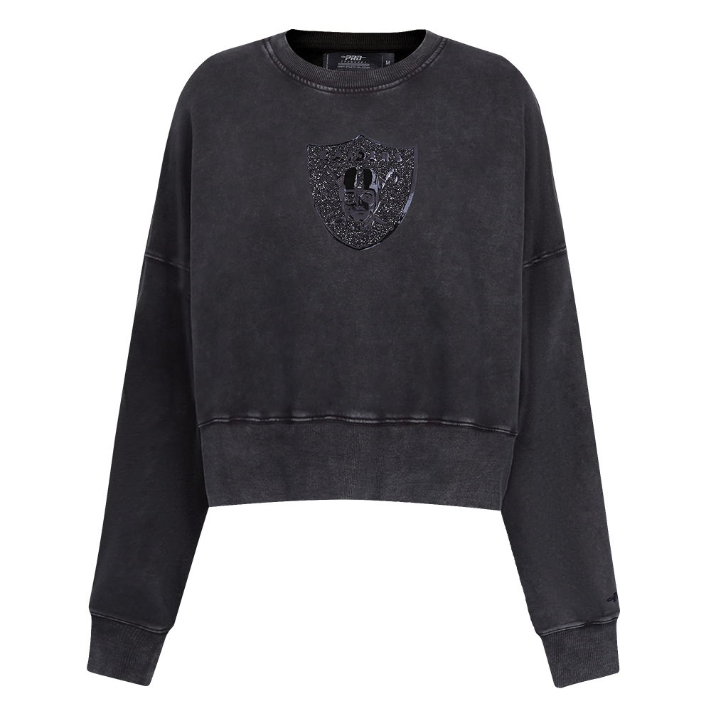 NFL LAS VEGAS RAIDERS WASHED CRYSTALLINE WOMEN'S ENZYME WASH FT CREWNECK (WASHED BLACK)
