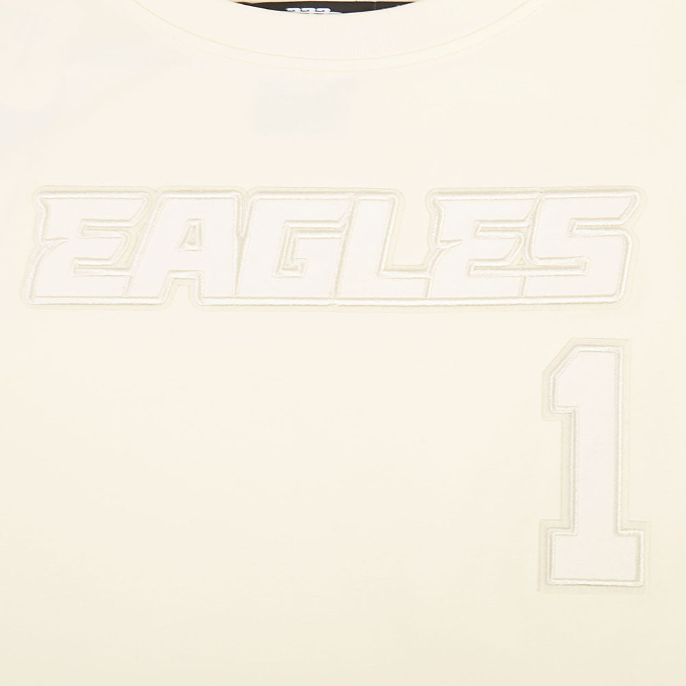 NFL PHILADELPHIA EAGLES JALEN HURTS #1 NEUTRAL PNN WOMEN'S SJ BOXY TEE