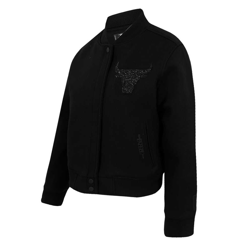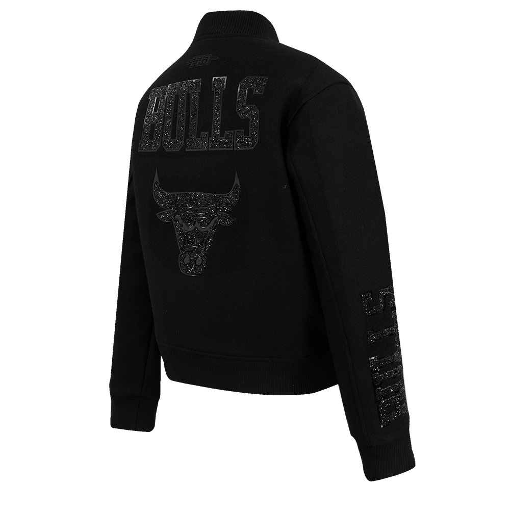 NBA CHICAGO BULLS WASHED CRYSTALLINE WOMEN'S SOLID WOOL VARSITY JACKET