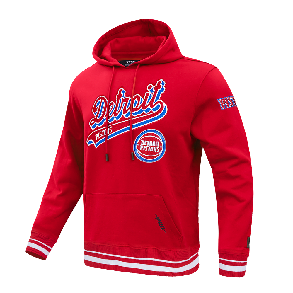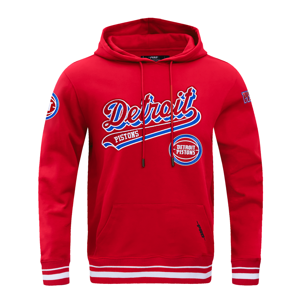 NBA DETROIT PISTONS SCRIPT TAIL MEN'S RIB FLEECE PULLOVER HOODIE