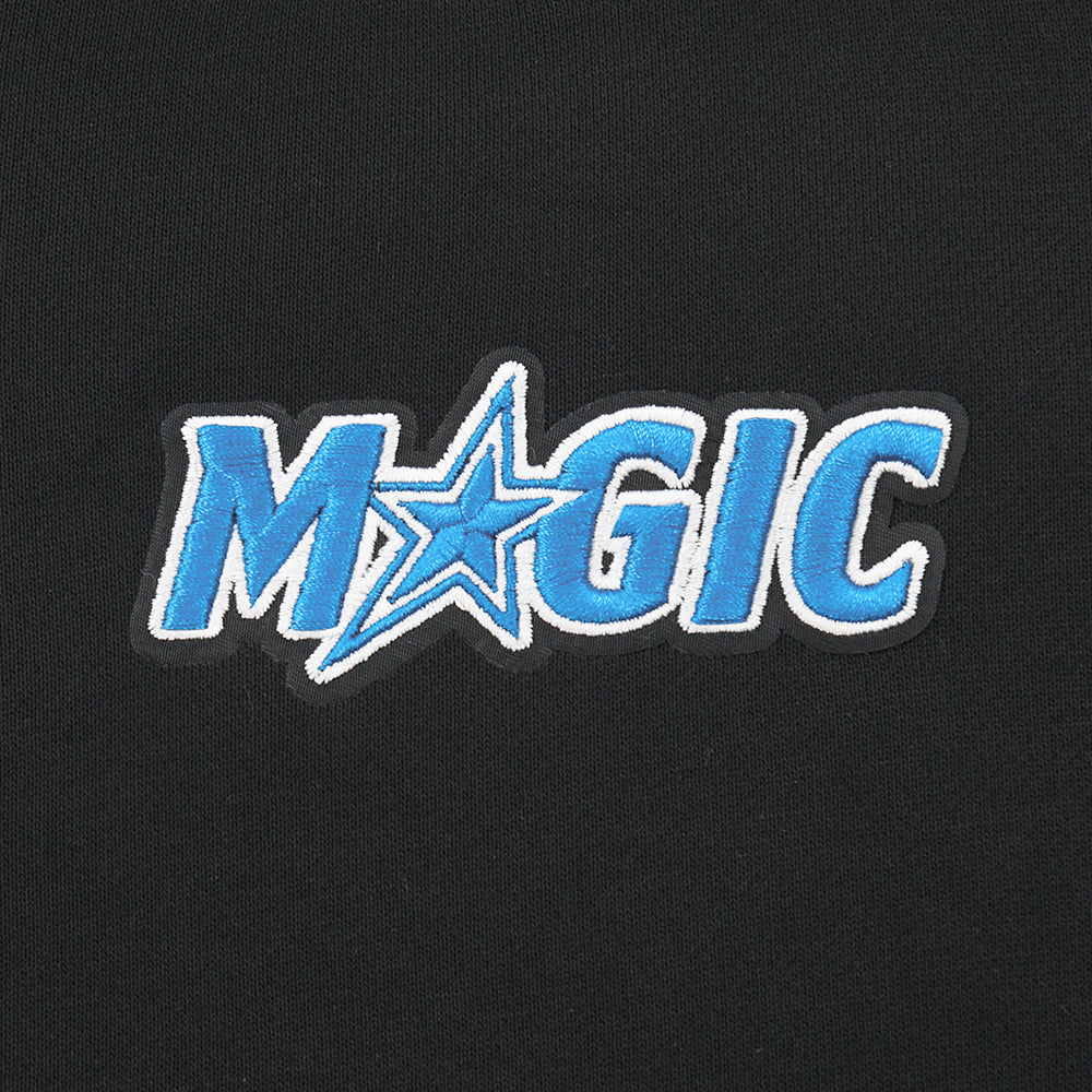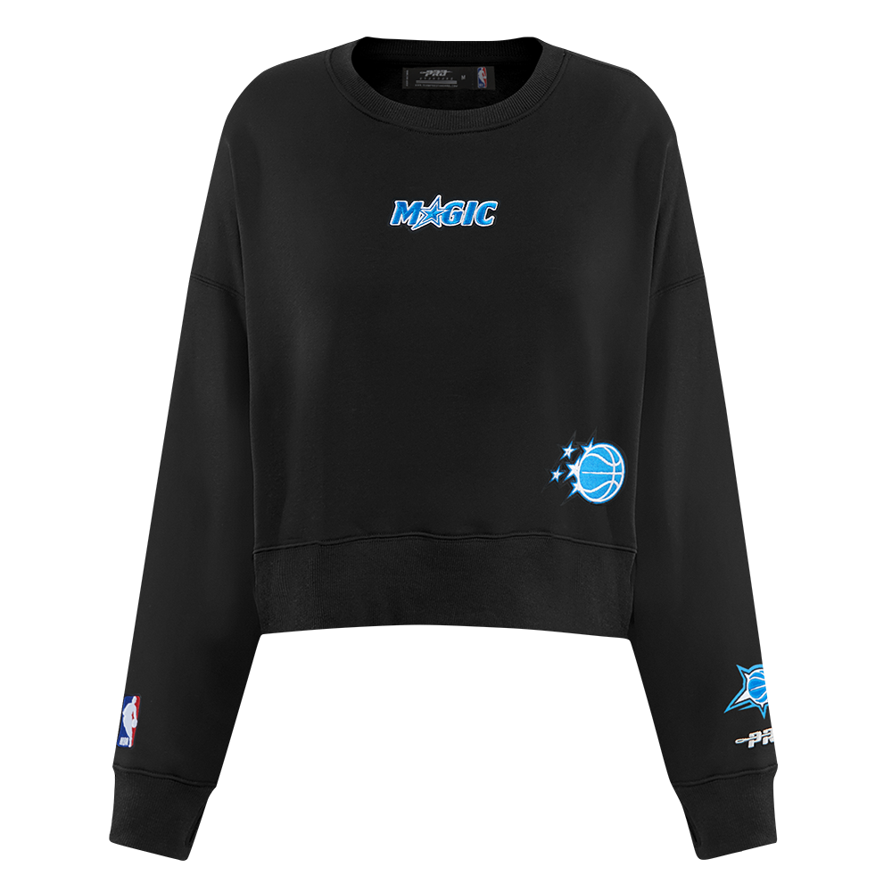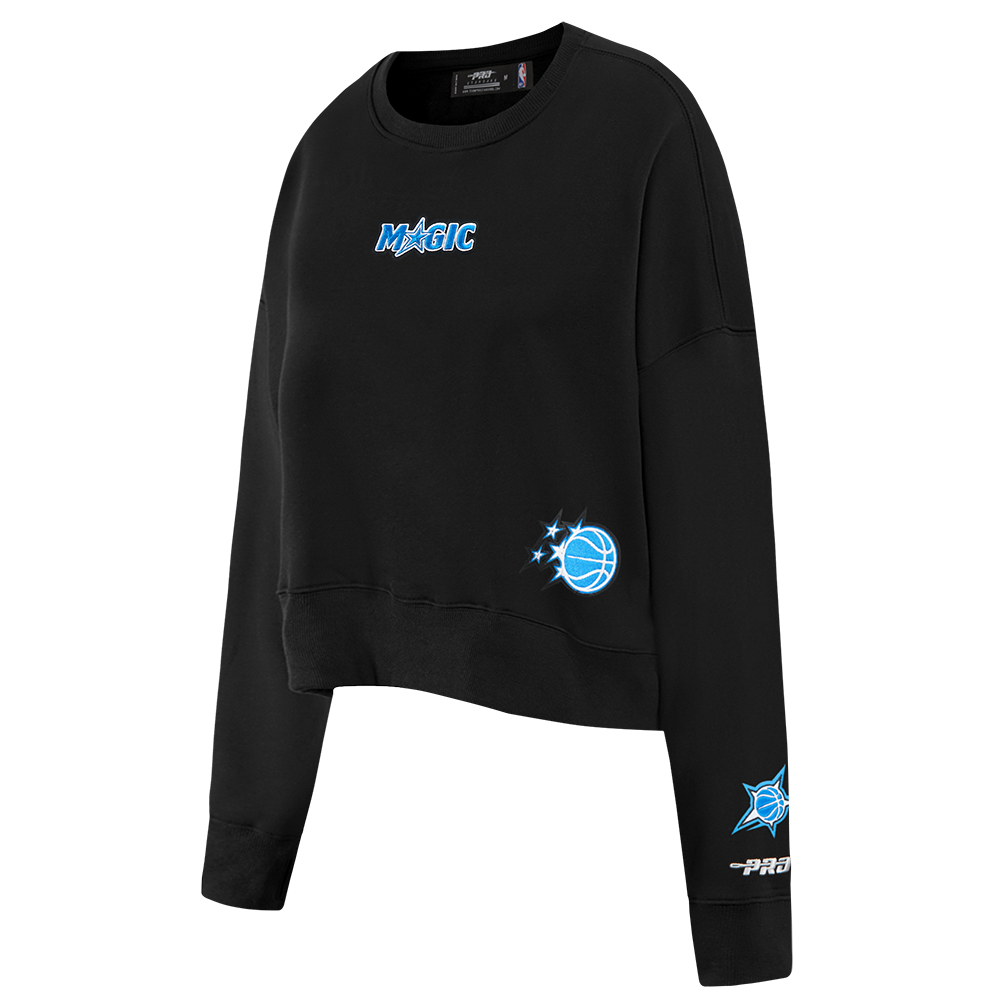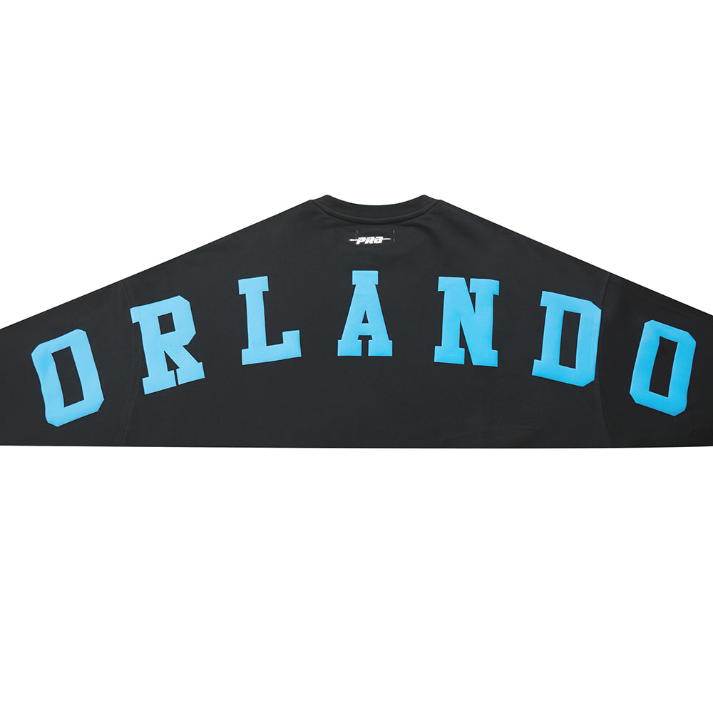 Pro Standard Orlando Magic Wingspan Crewneck — a premium women's NBA crewneck sweatshirt from the Wingspan collection featuring bold team name lettering and logo in an oversized, drop-shoulder fit.