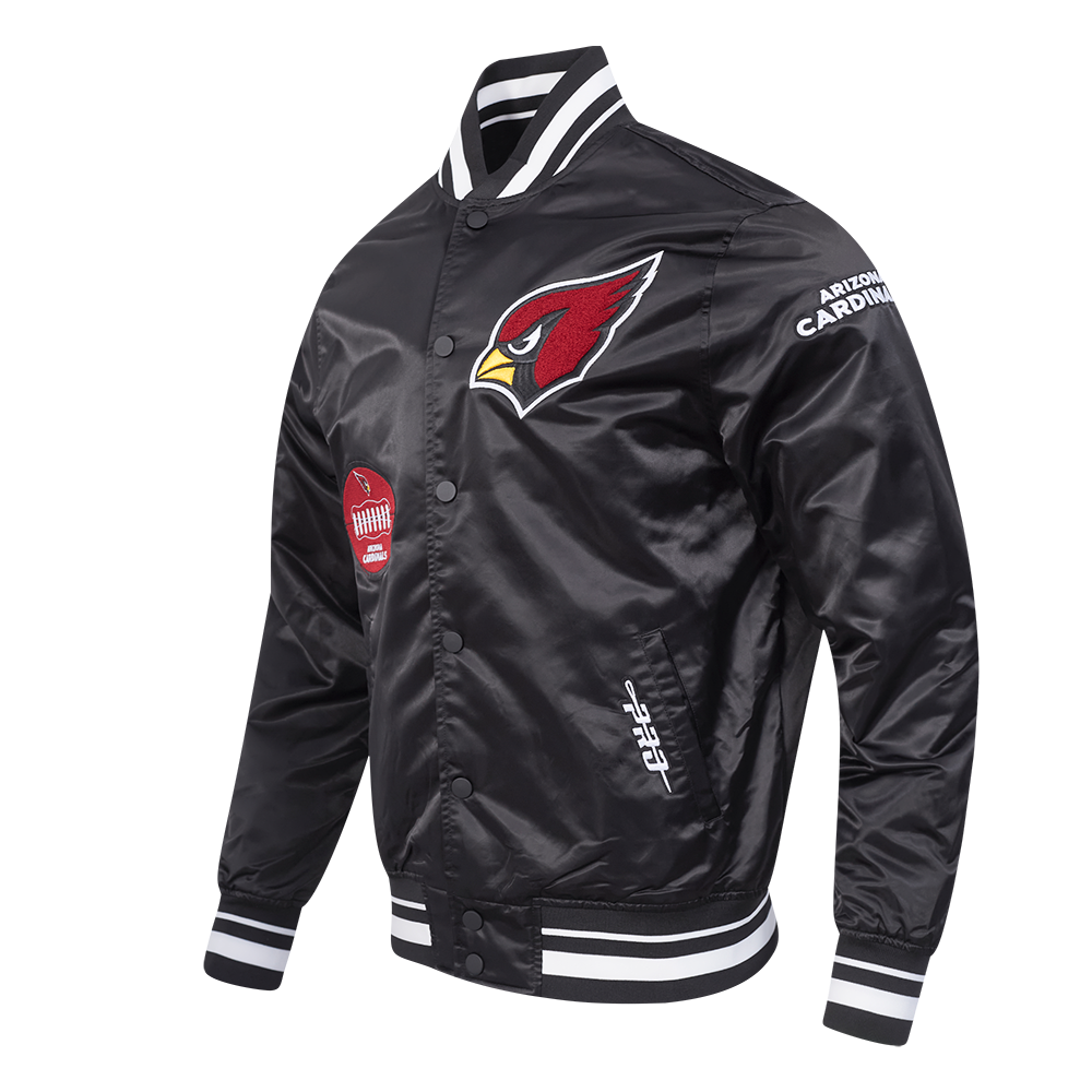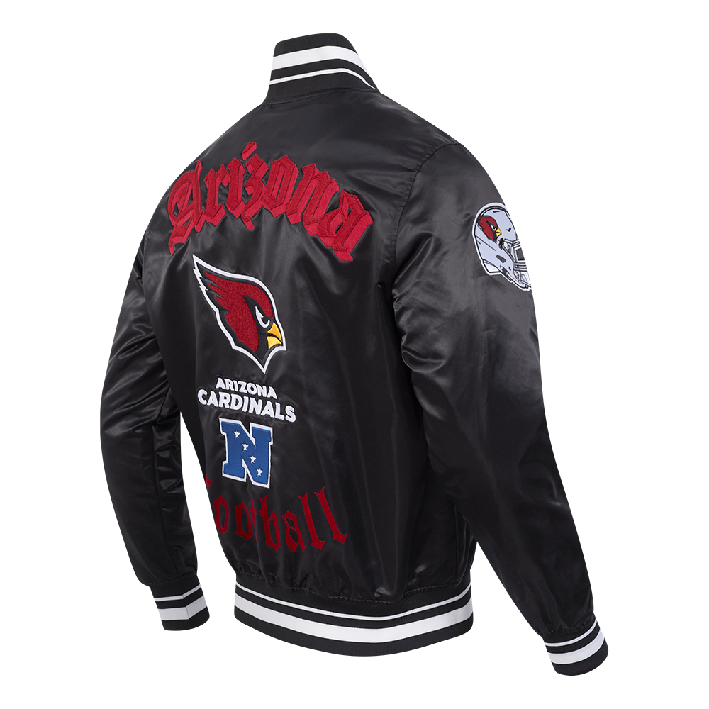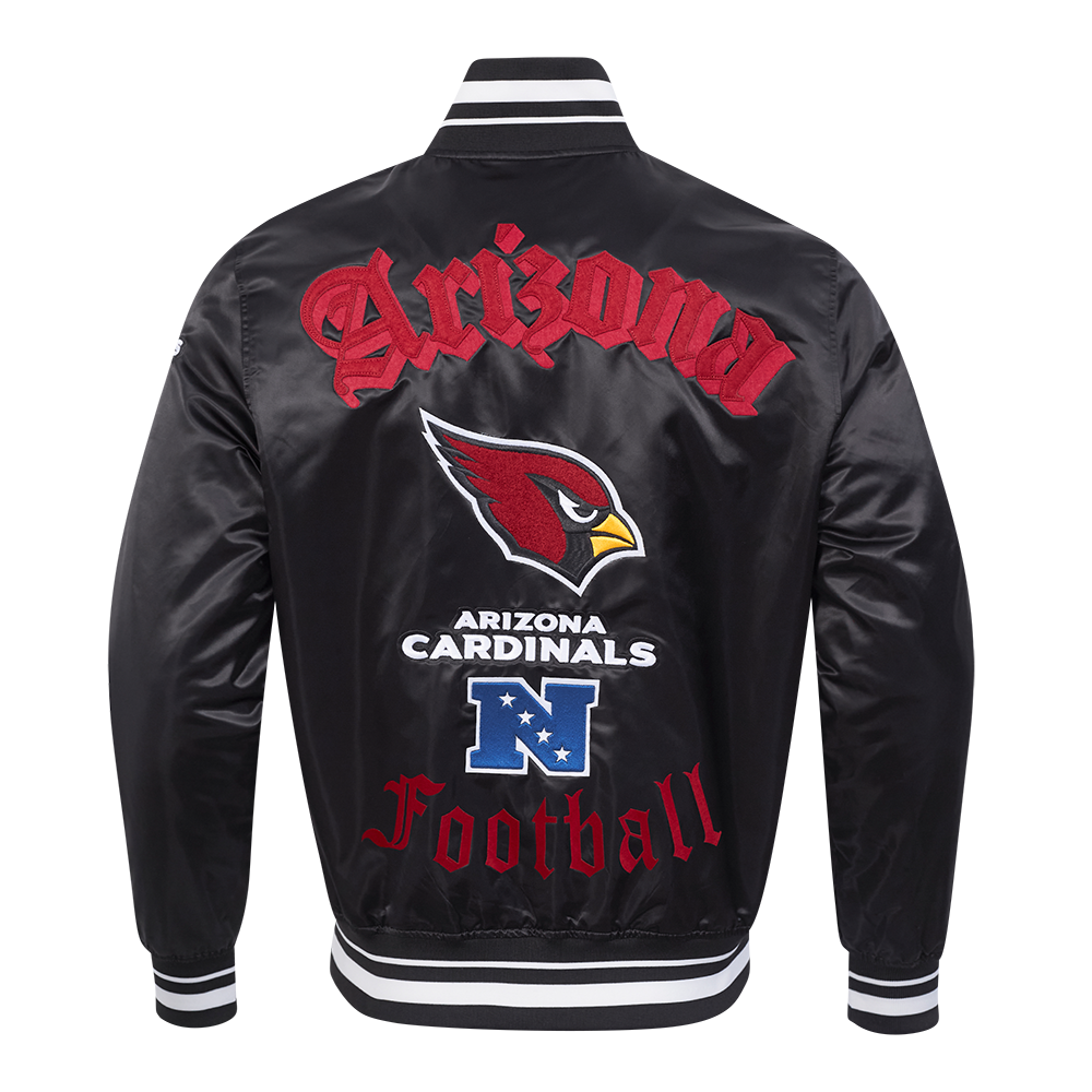The Pro Standard Premium NFL Arizona Cardinals Old English Men's Rib Satin Jacket (Black)
