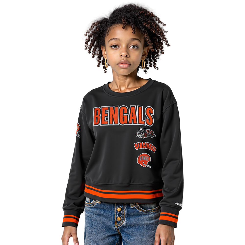 NFL CINCINNATI BENGALS RETRO CLASSIC BIG GIRLS RIB FLEECE CREWNECK