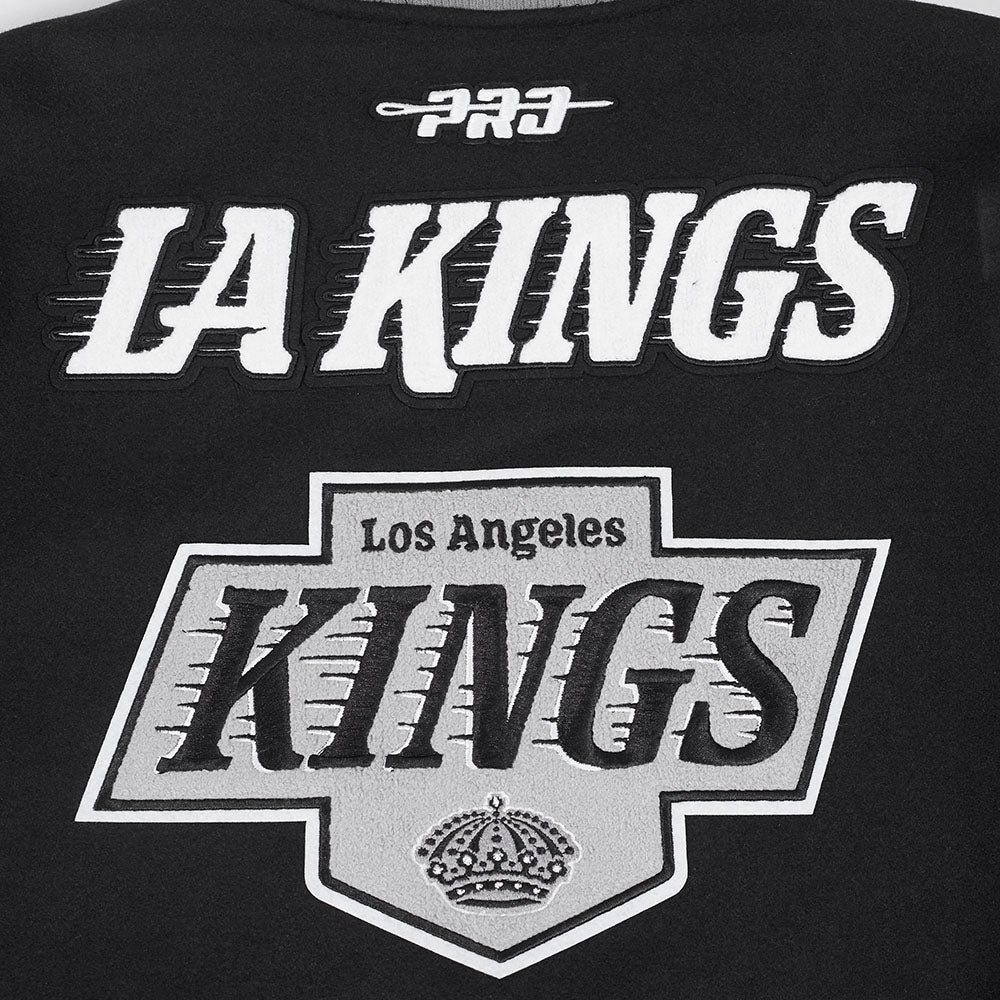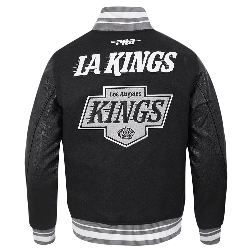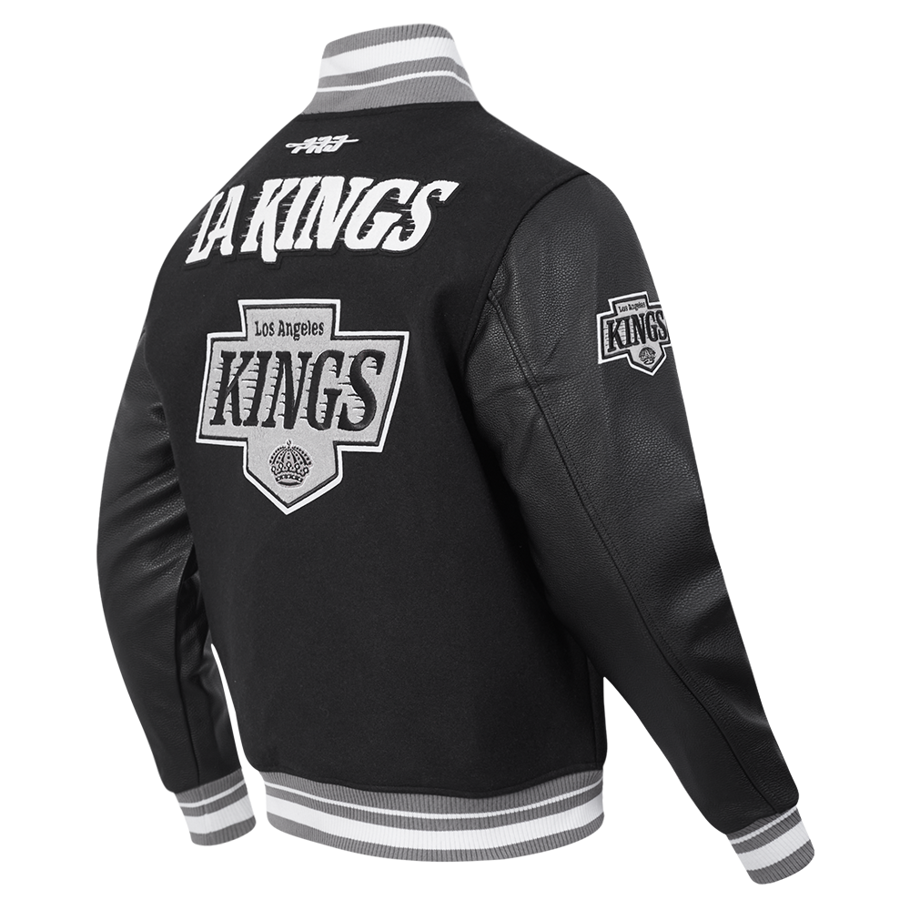 The Pro Standard Premium NHL Los Angeles Kings Retro Classic Men's Rib Wool Varsity Jacket (Black/Gray)