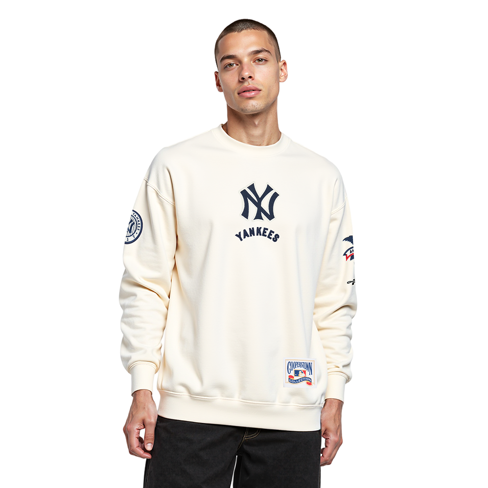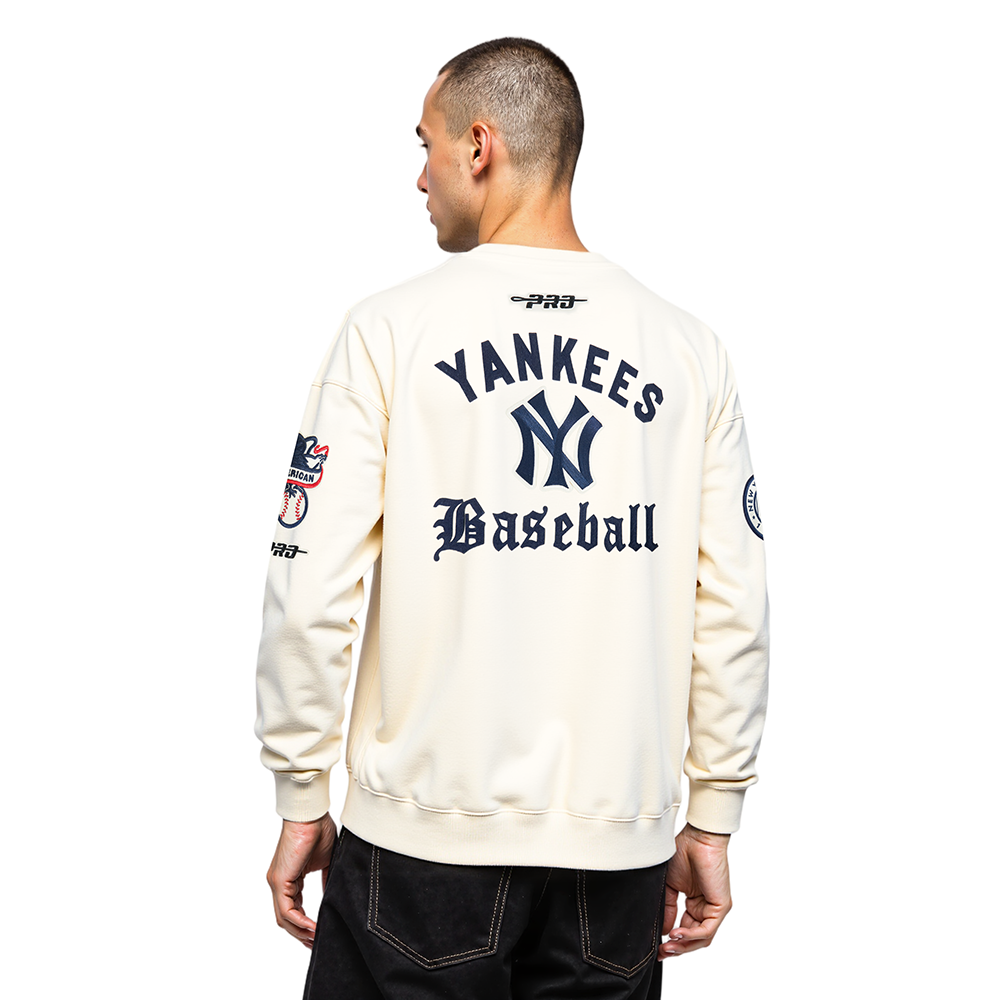 Pro Standard New York Yankees Modern Originals Crewneck in eggshell — a premium men's MLB crewneck sweatshirt from the Modern Originals collection featuring updated team graphics with a modern, contemporary design.